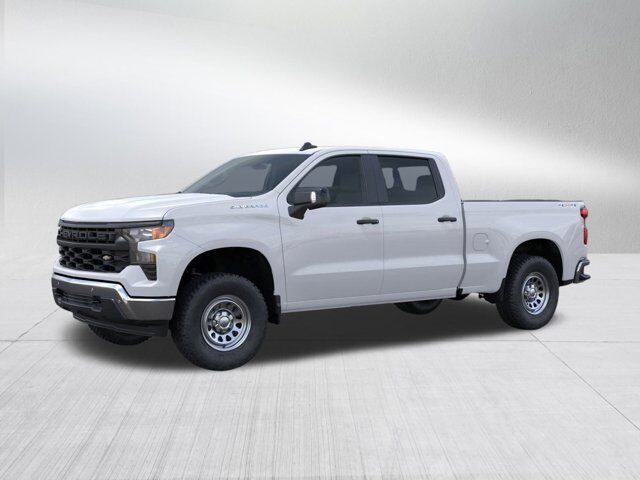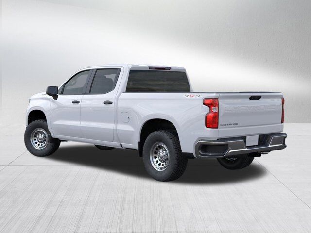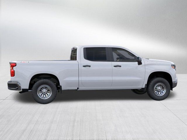 AUTO-LOCKING REAR DIFFERENTIAL,GVWR 7100 LBS. (3221 KG),JET BLACK VINYL SEAT TRIM,GLASS DEEP-TINTED,TAILGATE GATE FUNCTION MANUAL WITH EZ LIFT includes power lock and release,TIRE SPARE 265/70R17SL ALL-SEASON BLACKWALL,AIR FILTER HEAVY-DUTY,SUMMIT WHITE,DEFOGGER REAR-WINDOW ELECTRIC,SKID PLATES,MIRRORS OUTSIDE HEATED POWER-ADJUSTABLE When (PQA) WT Safety Package is ordered includes (DP6) high gloss Black mirror caps.),COOLING EXTERNAL ENGINE OIL COOLER,ENGINE BLOCK HEATER,ENGINE 5.3L ECOTEC3 V8 (355 hp [265 kW] @ 5600 rpm 383 lb-ft of torque [518 Nm] @ 4100 rpm); featuring available Dynamic Fuel Management that enables the engine to operate in 17 different patterns between 2 and 8 cylinders depending on demand to optimize power delivery and efficiency,BUMPER FRONT CHROME,UPFITTER SWITCH KIT (5) Provides 3-30 amp and 2-20 amp configurable circuits to facilitate installation of aftermarket electrical accessories. Kit with all required parts will be shipped loose with the truck for installation by the dealer or upfitter at customer expense. Installation instructions and technical assistance available at www.gmupfitter.com.,TRAILERING PACKAGE includes trailer hitch 7-pin and 4-pin connectors and (CTT) Hitch Guidance,SEATS FRONT 40/20/40 SPLIT-BENCH with covered armrest storage and under-seat storage (lockable) (STD),WT CONVENIENCE PACKAGE includes (AKO) tinted windows (C49) rear-window defogger and (DLF) power mirrors,ALTERNATOR 170 AMPS,TRAILER BRAKE CONTROLLER INTEGRATED,LICENSE PLATE KIT FRONT,AUDIO SYSTEM CHEVROLET INFOTAINMENT 3 SYSTEM 7 diagonal HD color touchscreen AM/FM stereo Bluetooth audio streaming for 2 active devices voice command pass-through to phone Wireless Apple CarPlay and Wireless Android Auto compatibility (STD),REAR PEDESTRIAN ALERT,WORK TRUCK PREFERRED EQUIPMENT GROUP includes standard equipment,TIRES 265/70R17 ALL-TERRAIN BLACKWALL,WT VALUE PACKAGE includes (PCV) WT Convenience Package and (Z82) Trailering Package,REAR AXLE 3.23 RATIO,REAR CROSS TRAFFIC BRAKING,LANE CHANGE ALERT WITH SIDE BLIND ZONE ALERT,WHEELS 17 X 8 (43.2 CM X 20.3 CM) ULTRA SILVER PAINTED STEEL (STD),TRANSMISSION 10-SPEED AUTOMATIC ELECTRONICALLY CONTROLLED with overdrive and tow/haul mode. Includes Cruise Grade Braking and Powertrain Grade Braking,POWER OUTLET INTERIOR POWER OUTLET 120-VOLT (400 watts shared with (KC9) bed mounted power outlet) Includes (UBI) USB ports.),HITCH GUIDANCE dynamic single line to aid in trailer alignment for hitching,12 MONTHS ONSTAR TELEMATICS Includes up to 12 months of OnStar Telematics. Provides actionable insights to help optimize your fleet's operations and allow remote vehicle management. OnStar Telematics does not include emergency or security services. Eligible customers must sign up for an account at gmenvolve.com/software/onstar in order to take advantage of this 12 month offer. Active connected vehicle services working electrical system cell reception and GPS signal required. Service coverage varies with conditions and location. Service availability features and functionality vary by device and software version. See gmenvolve.com/software/onstar for details and limitations. Non-transferable and non-refundable.,USB PORTS REAR DUAL CHARGE-ONLY,POWER OUTLET BED MOUNTED 120-VOLT (400 watts shared with (KI4) interior power outlet),FRONT AND REAR PARK ASSIST ULTRASONIC,COOLING AUXILIARY EXTERNAL TRANSMISSION OIL COOLER,BUMPER REAR CHROME,CHEVYTEC SPRAY-ON BEDLINER BLACK (does not include spray-on liner on tailgate due to Black composite inner panel),LIGHTING PERIMETER,WT SAFETY PACKAGE includes (UD5) Front and Rear Park Assist (UKC) Lane Change Alert with Side Blind Zone Alert (UFB) Rear Cross Traffic Braking (V46) Chrome front bumper (VJH) Chrome rear bumper (UKK) Rear Pedestrian Alert and (DP6) high gloss Black mirror caps (Includes (U12) Perimeter Lighting.,WORK TRUCK PACKAGE Includes (NZZ) skid plates and (K47) heavy-duty air filter,MIRROR CAPS PAINTED (High gloss Black.,Lane Departure Warning,Lane Keeping Assist,Front Collision Mitigation,Front Collision Warning,Automatic Highbeams,Keyless Start,Four Wheel Drive,Tow Hooks,Power Steering,ABS,4-Wheel Disc Brakes,Steel Wheels,Tires - Front All-Season,Tires - Rear All-Season,Tires - Front All-Season,Tires - Rear All-Season,Daytime Running Lights,Automatic Highbeams,AM/FM Stereo,MP3 Capability,Bluetooth Connection,Auxiliary Audio Input,Smart Device Integration,Bluetooth Connection,Smart Device Integration,Bluetooth Connection,WiFi Hotspot,Split Bench Seat,Vinyl Seats,Pass-Through Rear Seat,Rear Bench Seat,Floor Mats,Adjustable Steering Wheel,Power Windows,Power Door Locks,Keyless Entry,Power Door Locks,Cruise Control,Power Outlet,MP3 Capability,Auxiliary Audio Input,A/C,Front Collision Mitigation,Front Collision Warning,Front Collision Mitigation,Traction Control,Stability Control,Daytime Running Lights,Driver Air Bag,Passenger Air Bag,Front Side Air Bag,Front Head Air Bag,Rear Head Air Bag,Passenger Air Bag Sensor,Telematics,Requires Subscription,Telematics,Navigation from Telematics,Requires Subscription,Back-Up Camera,Lane Departure Warning,Lane Keeping Assist,Front Collision Warning,Driver Restriction Features,Tire Pressure Monitor