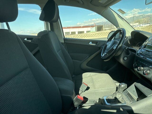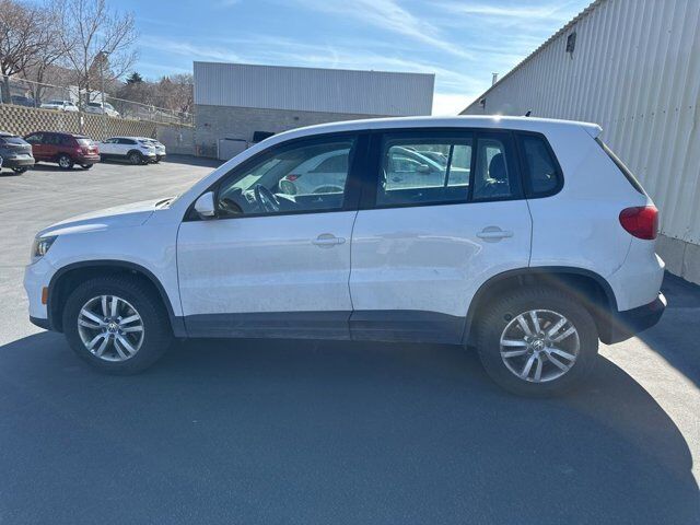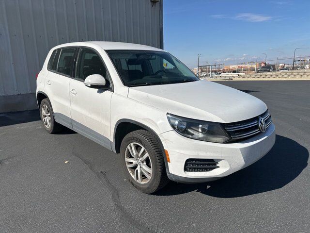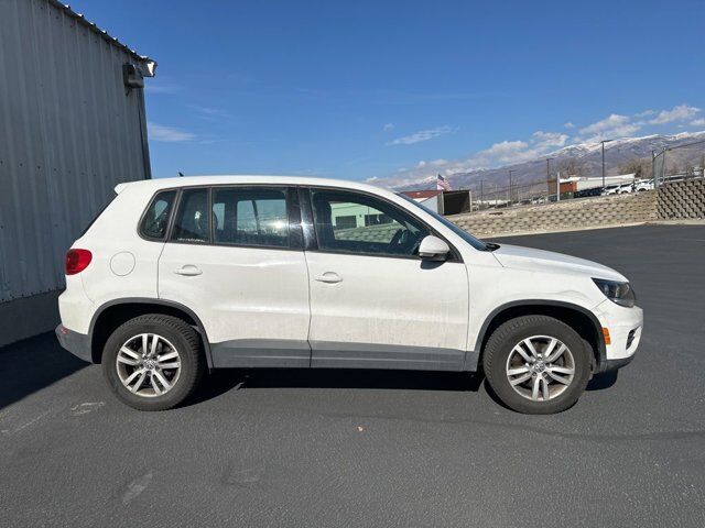 2014 Volkswagen Tiguan S Candy White FWD 2.0L TSI 6-Speed Automatic with Tiptronic3.45 Axle Ratio, 4-Wheel Disc Brakes, 8 Speakers, ABS brakes, Air Conditioning, Alloy wheels, AM/FM radio, Brake assist, Bumpers: body-color, CD player, Cloth Seating Surfaces, Driver door bin, Driver vanity mirror, Dual front impact airbags, Dual front side impact airbags, Electronic Stability Control, Four wheel independent suspension, Front anti-roll bar, Front Bucket Seats, Front Center Armrest, Front reading lights, Heated door mirrors, Illuminated entry, Leather Shift Knob, Leather steering wheel, Low tire pressure warning, Occupant sensing airbag, Outside temperature display, Overhead airbag, Overhead console, Panic alarm, Passenger door bin, Passenger vanity mirror, Power door mirrors, Power steering, Power windows, Radio: RCD310 w/Single CD, Rear anti-roll bar, Rear reading lights, Rear seat center armrest, Rear window defroster, Rear window wiper, Remote keyless entry, Rubber Mat Kit, Security system, Speed control, Speed-sensing steering, Split folding rear seat, Spoiler, Steering wheel mounted audio controls, Tachometer, Telescoping steering wheel, Tilt steering wheel, Traction control, Trip computer, Turn signal indicator mirrors, Variably intermittent wipers, Wheels: 16 Portland Alloy.CALL OUR SALES DEPARTMENT TODAY (801) 397-2277 FOR MORE DETAILS AND TO MAKE SURE THE VEHICLE IS STILL AVAILABLE.Awards:* 2014 KBB.com 10 Best Used Compact SUVs Under $15,000