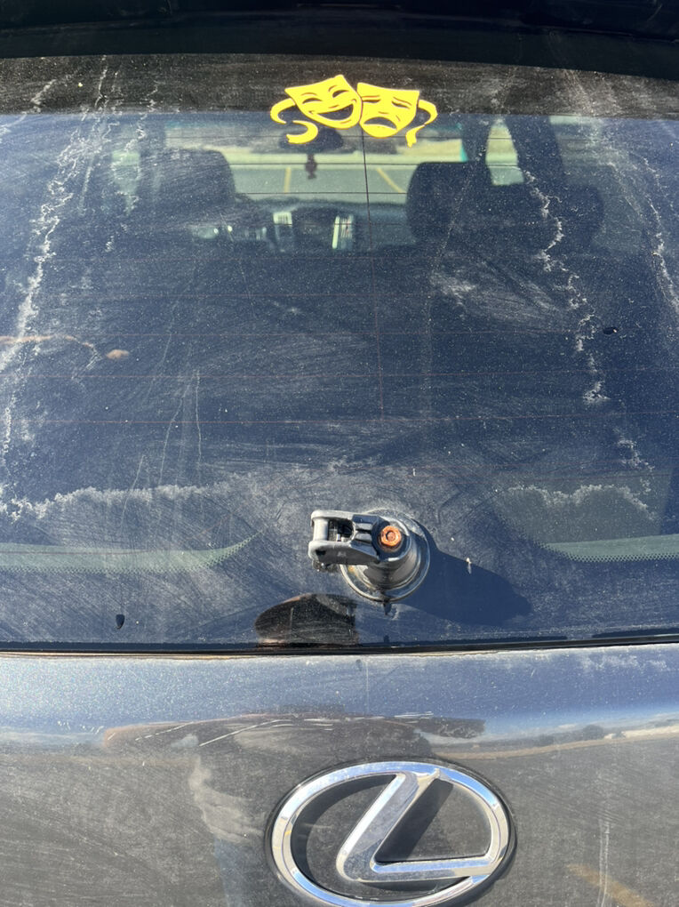 It is in pretty good condition! There are some minor scratches and a big dent by the driver door and the back window wiper is broken. Interior has some minor damage but is in good condition. The tires have lots of life left in them. The check engine light is on due to some spark plugs needing replaced.