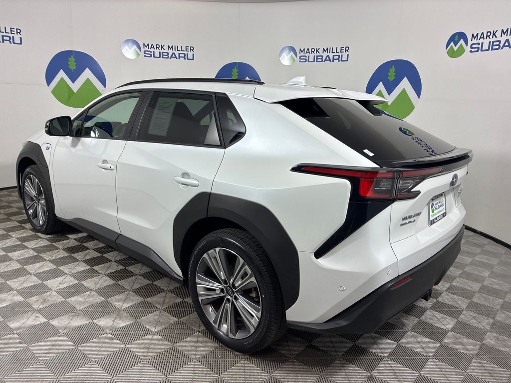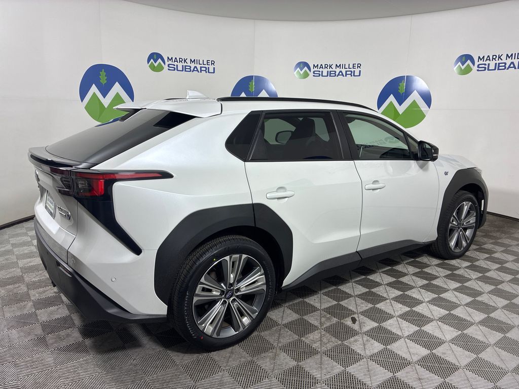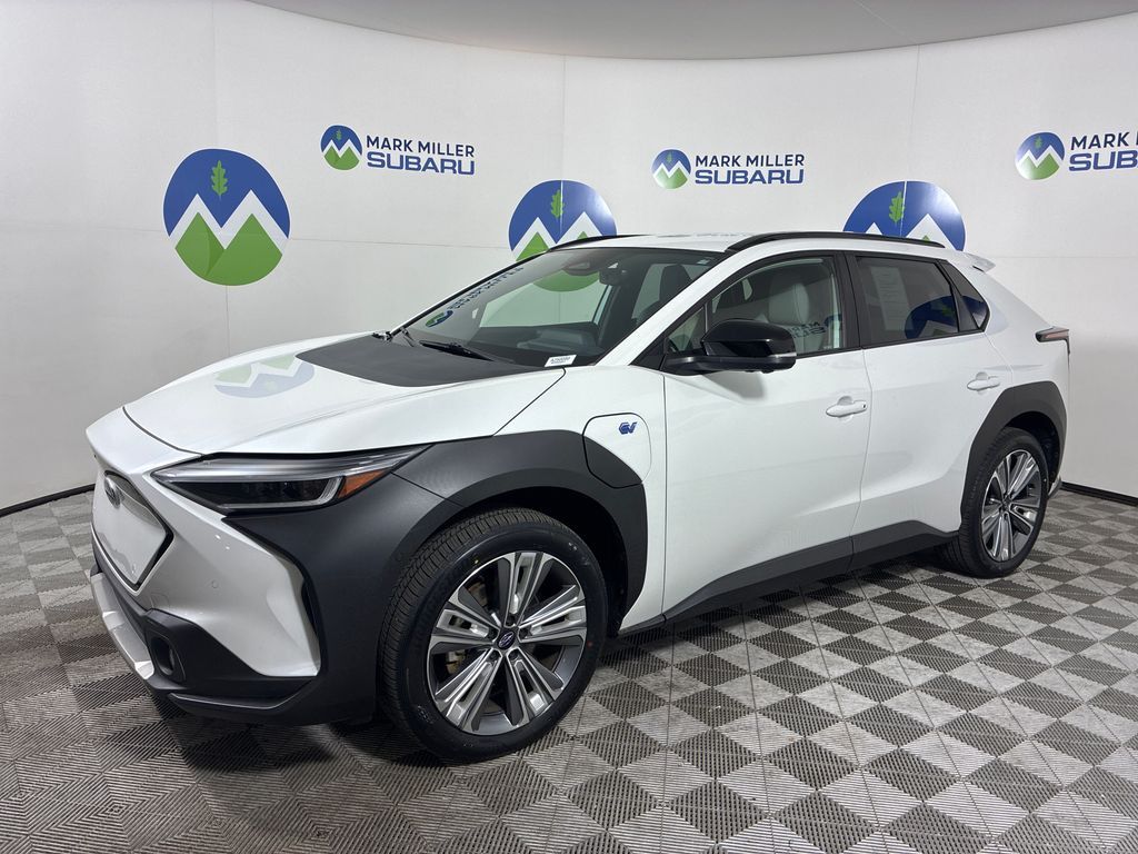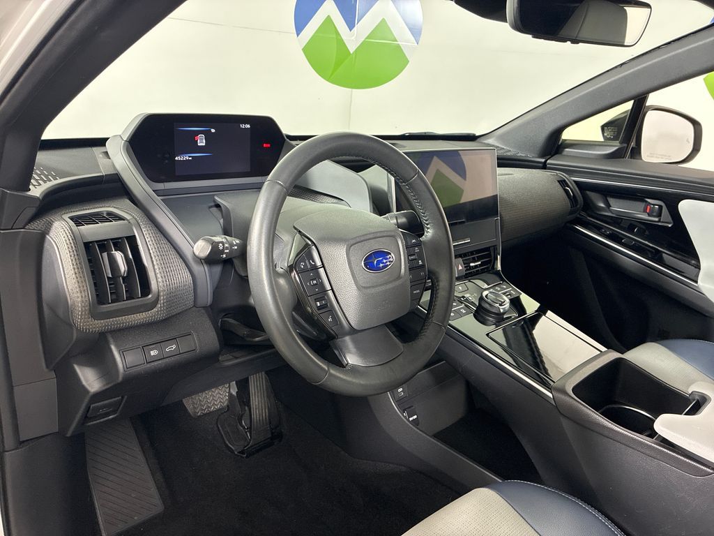 This 2023 Cosmic White Pearl Subaru Solterra Limited AWD is well equipped and includes these features and benefits: Standard Model, 11 Speakers, 13.8 Axle Ratio, 4-Wheel Disc Brakes, ABS brakes, Air Conditioning, Alloy wheels, AM/FM radio: SiriusXM, Auto High-beam Headlights, Auto-dimming Rear-View mirror, Automatic temperature control, Brake assist, Bumpers: body-color, Driver door bin, Driver vanity mirror, Dual front impact airbags, Dual front side impact airbags, Electronic Stability Control, Emergency communication system: Subaru Solterra Connect - Safety Connect (1 year trial included), Four wheel independent suspension, Front anti-roll bar, Front Bucket Seats, Front Center Armrest, Front dual zone A/C, Front fog lights, Front reading lights, Fully automatic headlights, Garage door transmitter: HomeLink, harman/kardon® Speakers, Heated door mirrors, Heated Front Bucket Seats, Heated front seats, Heated rear seats, Heated steering wheel, Illuminated entry, Knee airbag, Leather steering wheel, Low tire pressure warning, Memory seat, Navigation system: Cloud Navigation System (Subscription required), Occupant sensing airbag, Outside temperature display, Overhead airbag, Overhead console, Panic alarm, Passenger door bin, Passenger vanity mirror, Power door mirrors, Power driver seat, Power Liftgate, Power steering, Power windows, Radio data system, Radio: Subaru Solterra Connect 12.3'' Multimedia System, Rain sensing wipers, Rear anti-roll bar, Rear reading lights, Rear seat center armrest, Rear window defroster, Remote keyless entry, Security system, Speed control, Speed-sensing steering, Split folding rear seat, Spoiler, StarTex Upholstery, Steering wheel mounted audio controls, Telescoping steering wheel, Tilt steering wheel, Traction control, Trip computer, Turn signal indicator mirrors, Variably intermittent wipers, and Wheels: 20'' x 7.5'' J Aluminum-Alloy Gray Finish.