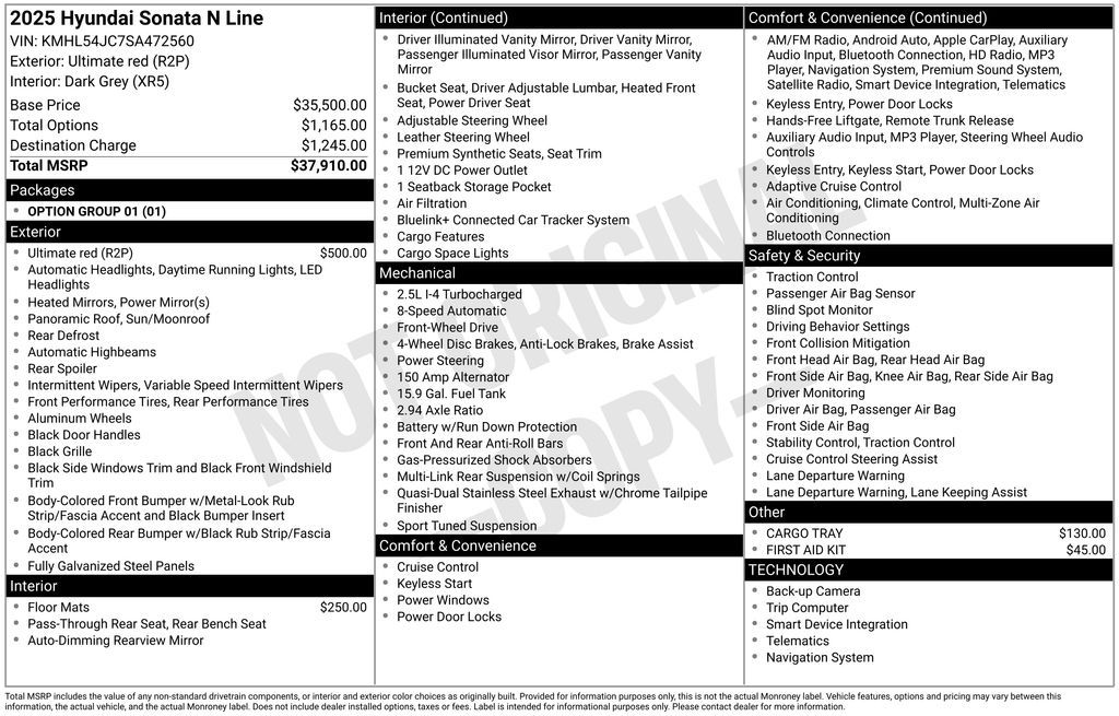 Ignite your drive with the 2025 Hyundai Sonata N Line, a sporttuned midsize sedan that pairs athletic performance with bold, modern style. With its turbocharged engine, responsive handling, and aggressive N Line design accents, this Sonata offers an exhilarating driving experience that stands out from the crowd.