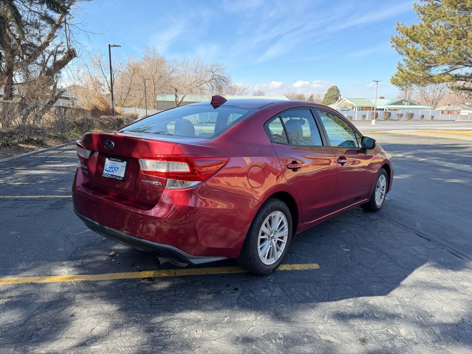 This 2018 Subaru Impreza 2.0i Premium Sedan 4D, has a Red exterior and a Gray interior color. Clean Title, One Owner, AWD, 93,834 miles, 5 Star Safety Rating, Award Winning Vehicle. Se, hablo espa�ol y hacemos ITIN. You can connect with us by calling or texting 801-290-8700 and by visiting us at 7677 S State St, Midvale, UT 84047.