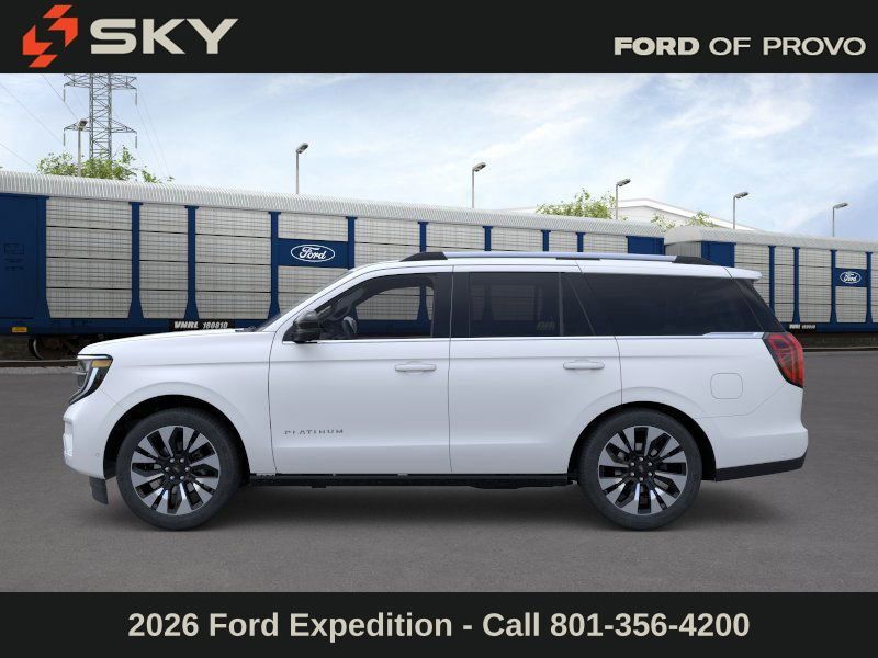 This 2026 Star White Metallic Tri-Coat Ford Expedition Platinum 4WD is well equipped and includes these features and benefits: Ford Connectivity Package (1-Year Included), 4WD, 10 Speakers, 2nd Row Power-Folding Captain's Chairs, 3.73 Axle Ratio, 3rd row seats: split-bench, 4-Wheel Disc Brakes, ABS brakes, Air Conditioning, Alloy wheels, AM/FM radio: SiriusXM with 360L, Apple CarPlay/Android Auto, Auto High-beam Headlights, Auto-dimming door mirrors, Auto-dimming Rear-View mirror, Automatic temperature control, Brake assist, Bumpers: body-color, Compass, Delay-off headlights, Driver door bin, Driver vanity mirror, Dual front impact airbags, Dual front side impact airbags, Electronic Stability Control, Emergency communication system: 911 Assist, Exterior Parking Camera Rear, Ford Digital Experience, Four wheel independent suspension, Front anti-roll bar, Front Bucket Seats, Front Center Armrest, Front dual zone A/C, Front reading lights, Fully automatic headlights, Garage door transmitter, Genuine wood dashboard insert, Genuine wood door panel insert, Heated and Ventilated Leather Front Captain's Chairs, Heated door mirrors, Heated front seats, Heated rear seats, Heated steering wheel, Illuminated entry, Leather steering wheel, Low tire pressure warning, Memory seat, Navigation System, Occupant sensing airbag, Outside temperature display, Overhead airbag, Overhead console, Panic alarm, Passenger door bin, Passenger vanity mirror, Power door mirrors, Power driver seat, Power moonroof: Vista Roof, Power passenger seat, Power steering, Power windows, Radio data system, Radio: B&O Sound System by Bang and Olufsen, Rain sensing wipers, Rear air conditioning, Rear anti-roll bar, Rear reading lights, Rear window defroster, Rear window wiper, Reclining 3rd row seat, Remote keyless entry, Security system, SiriusXM with 360L, Speed control, Speed-sensing steering, Speed-Sensitive Wipers, Split folding rear seat, Spoiler, Steering wheel memory, Steering wheel mounted audio controls, Tachometer, Telescoping steering wheel, Tilt steering wheel, Traction control, Trip computer, Turn signal indicator mirrors, Variably intermittent wipers, Ventilated front seats, Voltmeter, and Wheels: 20'' x 8.5'' Ebony Bright Machined Aluminum.