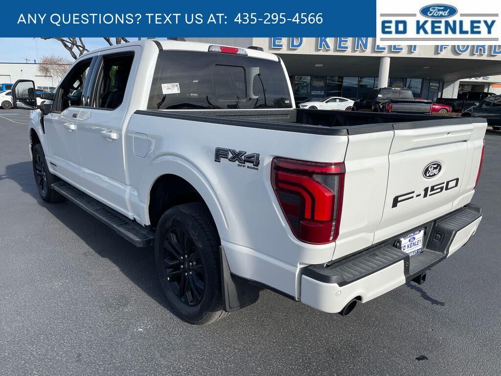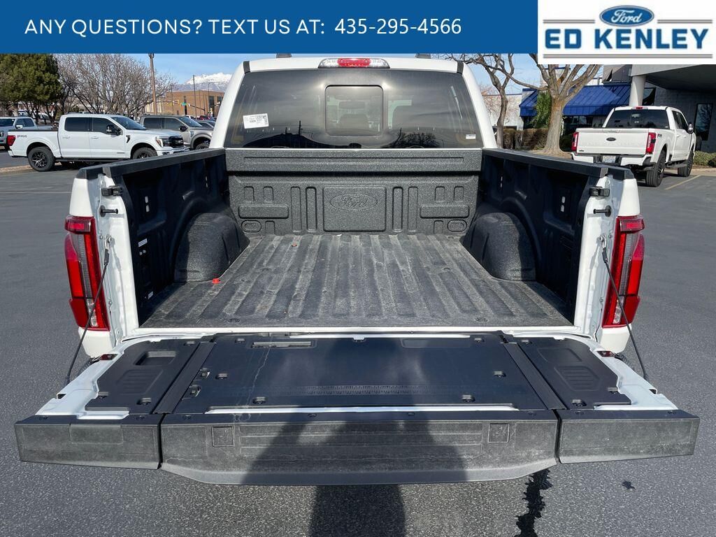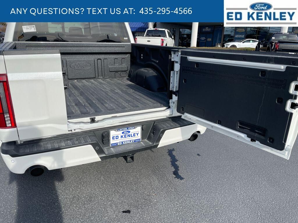 Lariat Black Appearance Package: Black Grille; ActiveX Trimmed Bucket Seats; Black Exterior Badging; Gray Box Side Decal; Body-Color Front and Rear Bumpers; Body-Color Skull Caps and Door Handles; Black Taillamp Bezels; Matte Black Tailgate F-150 Decal; Dark Interior Appliques,FX4 Off-Road Package: Tray Style Floor Liner Without Carpet Mats; Off-Road Tuned Front Shock Absorbers; Skid Plates; Monotube Rear Shocks; Rock Crawl Mode; 4x4 FX4 Off-Road Bodyside Decal; Hill Descent Control,Bed Utility Package: 4 Pickup Box Tie-Down Plates; 6" Extended Running Boards; LED Box Lighting; Pro Access Tailgate; Power Tailgate,Equipment Group 502A High: Ambient Lighting - Ice Blue Color Only; B&O Unleashed Sound System by Bang & Olufsen Radio; 2nd Row Heated Seats; 6" Extended Angular Bright Anodized Step Bar; Power-Sliding Rear Window; Heads-Up Display; Illuminated Driver and Passenger Visors; 275/60R20 All-Terrain Tires,Mobile Office Package: Wireless Charging; Partitioned Lockable Rear Storage; Console Worksurface,Tow/haul Package: Integrated Trailer Brake Controller,Star White Metallic TC,Pro Power Onboard - 7.2KW,Tough Bed Spray-In Bedliner,Max Tow Electronic Locking W/3.73 Axle Ratio,Power Telescoping/glass/folding Trailer Tow Mirrors,Front and Rear Molded Splash Guards,SecuriCode Keyless-Entry Keypad,Wheel Well Liner,Skid Plates,SYNC 4 AppLink/Apple CarPlay/Android Auto smart device wireless mirroring,Pre-Collision Assist with Pedestrian Detection,Predictive Speed Assist Automatic curve slowdown cruise control,Unresponsive driver assist,FordPass Connect 5G mobile hotspot internet access,Ford Co-Pilot360 - Reverse Camera rear mounted camera,Lane Keeping Alert,Cross-Traffic Alert with Reverse Brake Assist collision mitigation,Adaptive Cruise Control with Stop-and-Go,Head-up display,Brake assist system,Cruise control with steering wheel mounted controls,Ventilated driver and front passenger seats,Connected Navigation integrated navigation system with voice activation,Keyfob remote start,Heated steering wheel,Heated driver and front passenger seats,Heated rear seats,Leatherette front seat upholstery,Primary monitor touchscreen,Driver seat power reclining, lumbar support, cushion tilt, fore/aft control and height adjustable control,Automatic full-time 4WD,3.5L V-6 port/direct injection, DOHC, variable valve control, twin turbo, regular unleaded, engine with 430HP,3.5L V-6 DOHC,Front wireless smart device charging,SYNC 4 with Enhanced Voice Recognition (Alexa-Built-In) built-in virtual assistant,PCA with AEB and Intersection Assist forward collision mitigation with left turn assist,Ford Co-Pilot360 - Evasive Steering Assist evasion assist system,SecuriCode external keypad door lock control,Smart key with hands-free access and push button start,360 Degree Camera aerial view camera,Smart device remote start,Push-button,Automatic brake hold,Active aerodynamics,Bluetooth wireless audio streaming,Pro Trailer Backup Assist vehicle and trailer reverse assist,Pro Trailer Hitch Assist automated vehicle to trailer hitching assist,Gauge cluster display size: 12.00,Front mounted camera with washer,Right side camera,Pickup box camera,Left side camera,BLIS (Blind Spot Information System),Dual-zone front climate control,SYNC 4 with Enhanced Voice Recognition voice-activated climate control,Rock Crawl Mode off-road speed control,1 exterior 240V AC power outlet,Full gauge cluster screen,Directionally adaptive headlights