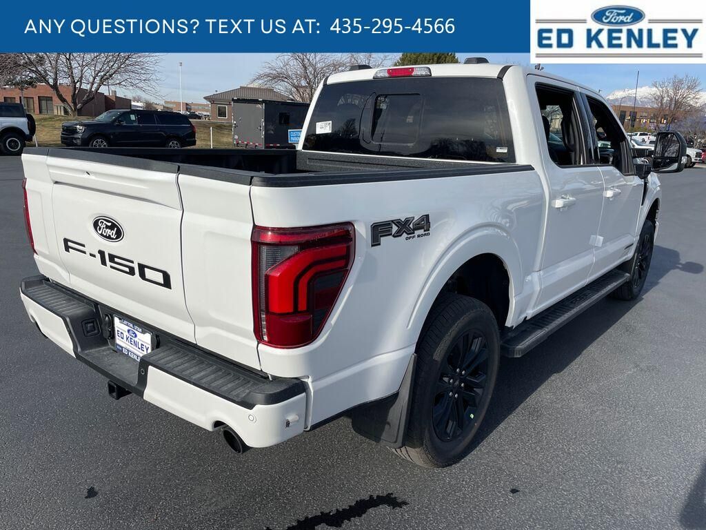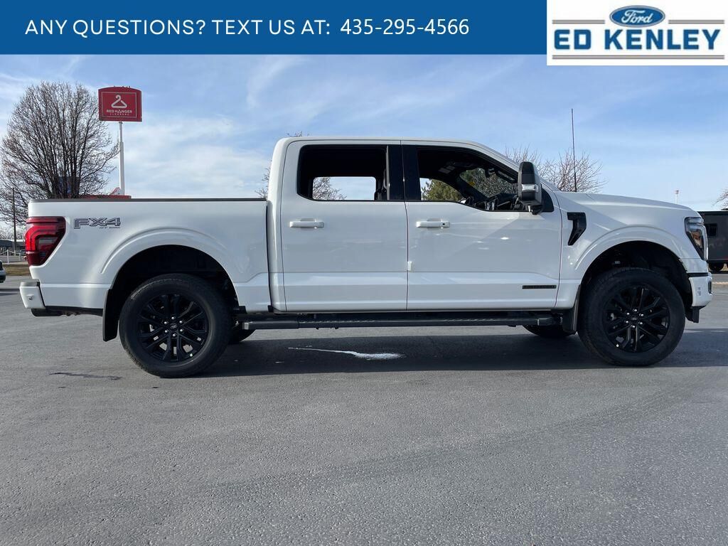 Lariat Black Appearance Package: Black Grille; ActiveX Trimmed Bucket Seats; Black Exterior Badging; Gray Box Side Decal; Body-Color Front and Rear Bumpers; Body-Color Skull Caps and Door Handles; Black Taillamp Bezels; Matte Black Tailgate F-150 Decal; Dark Interior Appliques. FX4 Off-Road Package: Tray Style Floor Liner Without Carpet Mats; Off-Road Tuned Front Shock Absorbers; Skid Plates; Monotube Rear Shocks; Rock Crawl Mode; 4x4 FX4 Off-Road Bodyside Decal; Hill Descent Control. Bed Utility Package: 4 Pickup Box Tie-Down Plates; 6" Extended Running Boards; LED Box Lighting; Pro Access Tailgate; Power Tailgate. Equipment Group 502A High: Ambient Lighting - Ice Blue Color Only; B&O Unleashed Sound System by Bang & Olufsen Radio; 2nd Row Heated Seats; 6" Extended Angular Bright Anodized Step Bar; Power-Sliding Rear Window; Heads-Up Display; Illuminated Driver and Passenger Visors; 275/60R20 All-Terrain Tires. Mobile Office Package: Wireless Charging; Partitioned Lockable Rear Storage; Console Worksurface. Tow/haul Package: Integrated Trailer Brake Controller. Star White Metallic TC. Pro Power Onboard - 7.2KW. Tough Bed Spray-In Bedliner. Max Tow Electronic Locking W/3.73 Axle Ratio. Power Telescoping/glass/folding Trailer Tow Mirrors. Front and Rear Molded Splash Guards. SecuriCode Keyless-Entry Keypad. Wheel Well Liner. Skid Plates. Equipment listed is based on original vehicle build and subject to change. Please confirm the accuracy of the included equipment by calling the dealer prior to purchase.