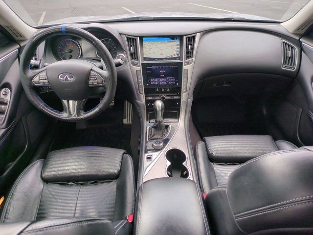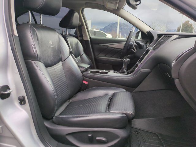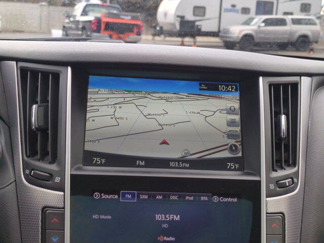 [S55] LITERATURE KIT,GRAPHITE LEATHER-APPOINTED SEATS,[Z66] ACTIVATION DISCLAIMER,[U01] NAVIGATION PACKAGE -inc: Infiniti InTouch Navigation System touch-screen lane guidance and 3-D building graphics SiriusXM Traffic w/real-time traffic (subscription required) information Infiniti Connection including safety security and convenience features voice recognition for navigation functions including one-shot voice destination entry and mirror compass replaced by navigation compass,[L11] FLOOR MATS,LIQUID PLATINUM,[N92] ILLUMINATED KICK PLATES,[B92] SPLASH GUARDS,Rear Wheel Drive,Power Steering,ABS,4-Wheel Disc Brakes,Brake Assist,Aluminum Wheels,Tires - Front Performance,Tires - Rear Performance,Sun/Moonroof,Generic Sun/Moonroof,Heated Mirrors,Power Mirror(s),Integrated Turn Signal Mirrors,Rear Defrost,Intermittent Wipers,Variable Speed Intermittent Wipers,Daytime Running Lights,Automatic Headlights,LED Headlights,Fog Lamps,AM/FM Stereo,CD Player,Satellite Radio,MP3 Capability,Steering Wheel Audio Controls,Auxiliary Audio Input,HD Radio,Requires Subscription,Auxiliary Audio Input,Premium Sound System,Premium Sound System,Bluetooth Connection,Power Driver Seat,Power Passenger Seat,Bucket Seats,Heated Front Seat(s),Driver Adjustable Lumbar,Rear Bench Seat,Adjustable Steering Wheel,Trip Computer,Power Windows,Leather Steering Wheel,Keyless Entry,Power Door Locks,Keyless Start,Keyless Entry,Power Door Locks,Remote Trunk Release,Universal Garage Door Opener,Cruise Control,Climate Control,Multi-Zone A/C,A/C,Leather Seats,Driver Vanity Mirror,Passenger Vanity Mirror,Driver Illuminated Vanity Mirror,Passenger Illuminated Visor Mirror,Auto-Dimming Rearview Mirror,Floor Mats,Keyless Start,Smart Device Integration,Power Windows,Power Door Locks,Trip Computer,Security System,Immobilizer,Traction Control,Stability Control,Traction Control,Front Side Air Bag,Tire Pressure Monitor,Driver Air Bag,Passenger Air Bag,Front Head Air Bag,Rear Head Air Bag,Passenger Air Bag Sensor,Child Safety Locks,Back-Up Camera