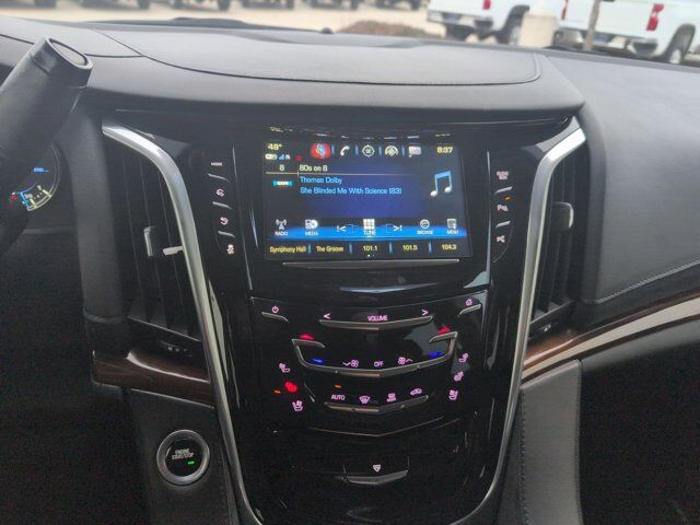 Navigation System,16 Speakers,AM/FM radio: SiriusXM,Bose Centerpoint 16 Speaker Surround Sound System,CD player,DVD-Audio,HD Radio,Radio data system,Radio: AM/FM Cadillac User Experience w/Nav,Rear audio controls,Single Slot CD/MP3 Player,SiriusXM Radio,Air Conditioning,Automatic temperature control,Front dual zone A/C,Rear air conditioning,Rear window defroster,12-Way Power Front Passenger Seat Adjuster,Memory seat,Pedal memory,Power driver seat,Power steering,Power windows,Remote keyless entry,Steering wheel memory,Steering wheel mounted audio controls,Adaptive suspension,Auto-leveling suspension,Magnetic Ride Control Suspension,Traction control,4-Wheel Disc Brakes,ABS brakes,Dual front impact airbags,Dual front side impact airbags,Emergency communication system: OnStar Protection,Front anti-roll bar,Front wheel independent suspension,Low tire pressure warning,Occupant sensing airbag,Overhead airbag,Rear anti-roll bar,Power Liftgate,Brake assist,Electronic Stability Control,Exterior Parking Camera Rear,Delay-off headlights,Panic alarm,Security system,Speed control,Auto-dimming door mirrors,Bodyside moldings,Bumpers: body-color,Heated door mirrors,Power door mirrors,Roof rack: rails only,Spoiler,Turn signal indicator mirrors,Adjustable pedals,Apple CarPlay/Android Auto,Auto tilt-away steering wheel,Auto-dimming Rear-View mirror,Compass,Driver door bin,Driver vanity mirror,Front reading lights,Garage door transmitter,Heated steering wheel,Illuminated entry,Leather Shift Knob,Leather steering wheel,Outside temperature display,Overhead console,Passenger vanity mirror,Rear reading lights,SiriusXM NavTraffic,Tachometer,Telescoping steering wheel,Tilt steering wheel,Trip computer,2-Presets Memory For Driver Seat Adjuster,3rd row seats: split-bench,Front Bucket Seats,Heated & Cooled Driver & Front Passenger Seats,Heated front seats,Heated rear seats,Leather Seating Surfaces,Power passenger seat,Split folding rear seat,Ventilated front seats,Front Center Armrest w/Storage,Passenger door bin,Alloy wheels,Chrome wheels,Wheels: 20 inch x 9 inch Dual 7-Spoke Chrome Finish Alloy,Rain sensing wipers,Rear window wiper,Variably intermittent wipers,3.23 Axle Ratio,ENGINE 6.2L V8 WITH ACTIVE FUEL MANAGEMENT Spark Ignition Direct Injection (SIDI) and Variable Valve Timing (VVT) includes aluminum block construction (420 hp [313.2 kW] @ 5600 rpm 460 lb-ft of torque [621 N-m] @ 4100 rpm) (STD),Keyless Start,Locking/Limited Slip Differential,Four Wheel Drive,Tow Hitch,Active Suspension,Air Suspension,Power Steering,ABS,4-Wheel Disc Brakes,4-Wheel Disc Brakes,Chrome Wheels,Tires - Front Performance,Tires - Rear Performance,Conventional Spare Tire,Conventional Spare Tire,Luggage Rack,Running Boards/Side Steps,Privacy Glass,Heated Mirrors,Power Mirror(s),Integrated Turn Signal Mirrors,Power Folding Mirrors,Intermittent Wipers,Variable Speed Intermittent Wipers,Rain Sensing Wipers,Intermittent Wipers,Remote Trunk Release,Power Liftgate,Hands-Free Liftgate,AM/FM Stereo,Navigation System,MP3 Capability,Bluetooth Connection,Auxiliary Audio Input,Smart Device Integration,Driver Restriction Features,Satellite Radio,Requires Subscription,HD Radio,Premium Sound System,CD Player,MP3 Capability,WiFi Hotspot,Bluetooth Connection,Satellite Radio,Telematics,Navigation from Telematics,Requires Subscription,Power Driver Seat,Power Passenger Seat,Leather Seats,Bucket Seats,Heated Front Seat(s),Driver Adjustable Lumbar,Passenger Adjustable Lumbar,Seat Memory,Bucket Seats,Rear Bucket Seats,Heated Front Seat(s),Cooled Front Seat(s),Heated Rear Seat(s),Power Passenger Seat,3rd Row Seat,Pass-Through Rear Seat,Climate Control,A/C,MP3 Capability,Auxiliary Audio Input,Heated Rear Seat(s),Floor Mats,Adjustable Steering Wheel,Leather Steering Wheel,Adjustable Steering Wheel,Heated Steering Wheel,Steering Wheel Audio Controls,Tire Pressure Monitor,Trip Computer,Power Windows,Power Windows,Power Door Locks,Power Door Locks,Adjustable Pedals,Adjustable Steering Wheel,Mirror Memory,Adjustable Pedals,Seat Memory,Keyless Entry,Power Door Locks,Immobilizer,Keyless Start,Remote Engine Start,Cruise Control,Universal Garage Door Opener,Security System,Immobilizer,Climate Control,Multi-Zone A/C,A/C,Rear A/C,Rear Defrost,Auto-Dimming Rearview Mirror,Traction Control,Stability Control,Driver Air Bag,Passenger Air Bag,Front Side Air Bag,Front Head Air Bag,Rear Head Air Bag,Passenger Air Bag Sensor,Telematics,Requires Subscription,Rear Parking Aid,Rear Parking Aid,Automatic Parking,Back-Up Camera,Aerial View Display System,Child Safety Locks,Driver Restriction Features,Tire Pressure Monitor
