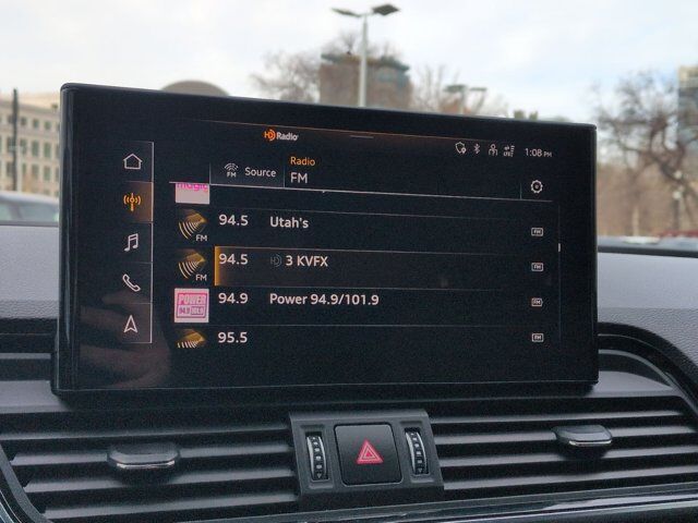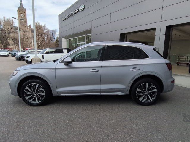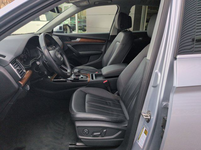 Clean CARFAX. Silver 2022 Audi Q5 45 S line Premium quattro quattro 7-Speed Automatic S tronic 2.0L Turbocharged Black Leather, 10 Speakers, 4-Wheel Disc Brakes, 5.302 Axle Ratio, ABS brakes, Air Conditioning, Alloy wheels, AM/FM radio, Auto High-beam Headlights, Auto-dimming Rear-View mirror, Automatic temperature control, Brake assist, Bumpers: body-color, Compass, Delay-off headlights, Driver door bin, Driver vanity mirror, Dual front impact airbags, Dual front side impact airbags, Electronic Stability Control, Emergency communication system: Audi connect CARE, Exterior Parking Camera Rear, Four wheel independent suspension, Front anti-roll bar, Front Bucket Seats, Front Center Armrest, Front dual zone A/C, Front fog lights, Front reading lights, Garage door transmitter: HomeLink, Genuine wood console insert, Genuine wood dashboard insert, Genuine wood door panel insert, Heated 8-Way Power Front Bucket Seats, Heated door mirrors, Heated front seats, Illuminated entry, Leather Seating Surfaces, Leather Shift Knob, Low tire pressure warning, Occupant sensing airbag, Outside temperature display, Overhead airbag, Overhead console, Panic alarm, Passenger door bin, Passenger vanity mirror, Power door mirrors, Power driver seat, Power Liftgate, Power passenger seat, Power steering, Power windows, Radio data system, Radio: Audi Sound System, Rain sensing wipers, Rear air conditioning, Rear anti-roll bar, Rear fog lights, Rear reading lights, Rear seat center armrest, Rear window defroster, Rear window wiper, Remote keyless entry, Roof rack, Security system, Speed control, Speed-sensing steering, Speed-Sensitive Wipers, Split folding rear seat, Spoiler, Steering wheel mounted audio controls, Tachometer, Telescoping steering wheel, Tilt steering wheel, Traction control, Trip computer, Turn signal indicator mirrors, Variably intermittent wipers, Wheels: 18 5-Arm-Star Design, Black Leather.Recent Arrival! 23/28 City/Highway MPG