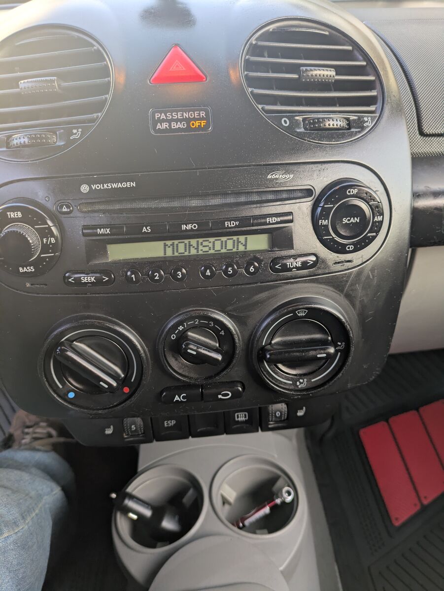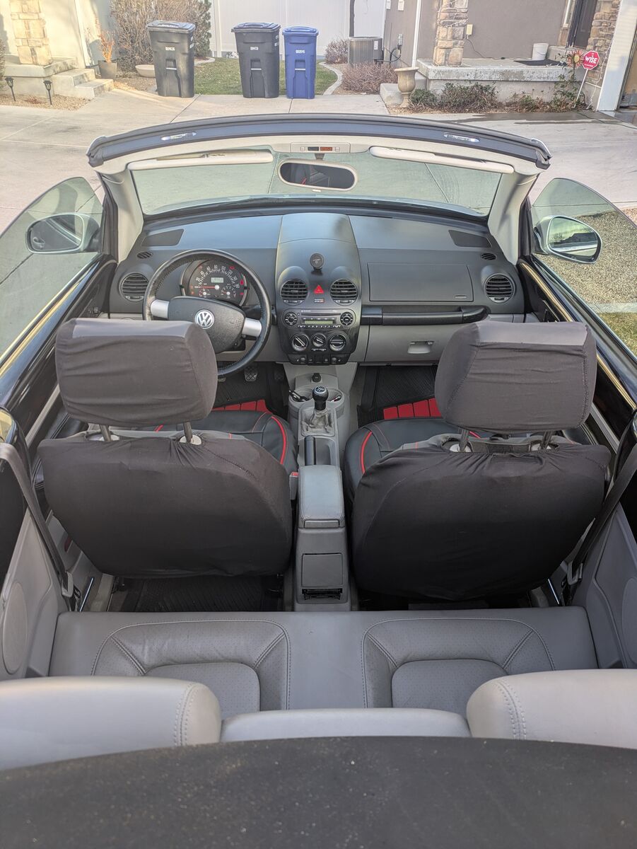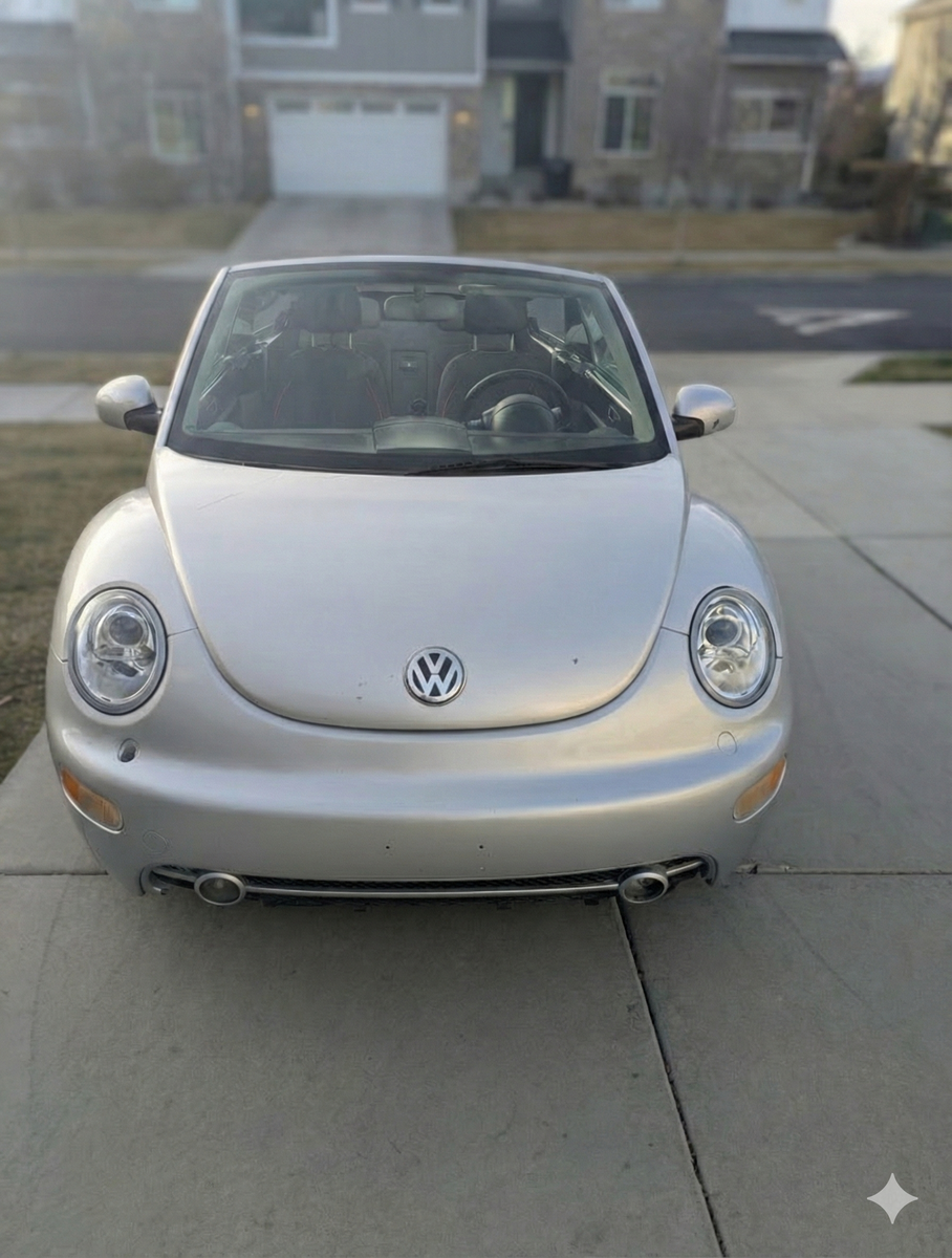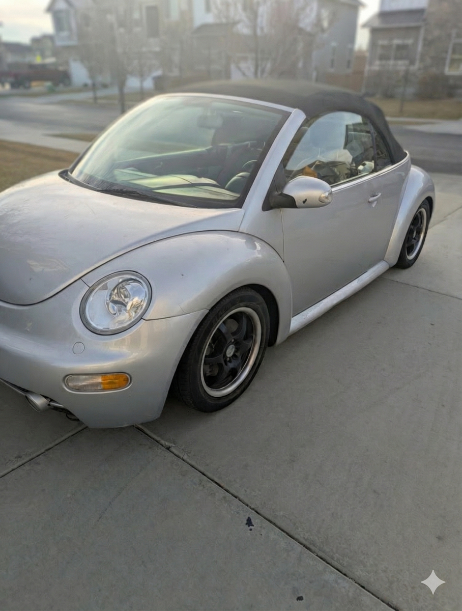 This zippy 5 Speed Turbo Convertible New Beetle is for sale as my daughter decided she didn't want to drive a stick shift. The heater blows hot, the AC cold, the heated seats work great. It came with Upgraded Monsoon Sound and leather seats. It's in good shape for it's age. The previous owner installed lowering springs and custom rims. I used AI to blur the background of the images.