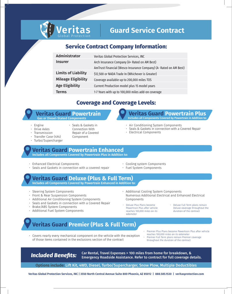 ✅✅ Veritas Premier Full-Term Warranty that doesn’t expire for 3 1/2 years and about 45,000 miles. At full asking price, will sell with it for $1000 transfer fees. I bought the warranty for peace of mind and haven’t used it a single time. It covers just about everything for the entire term, with just $100 deductible. Warranty details included in pictures. ✅✅