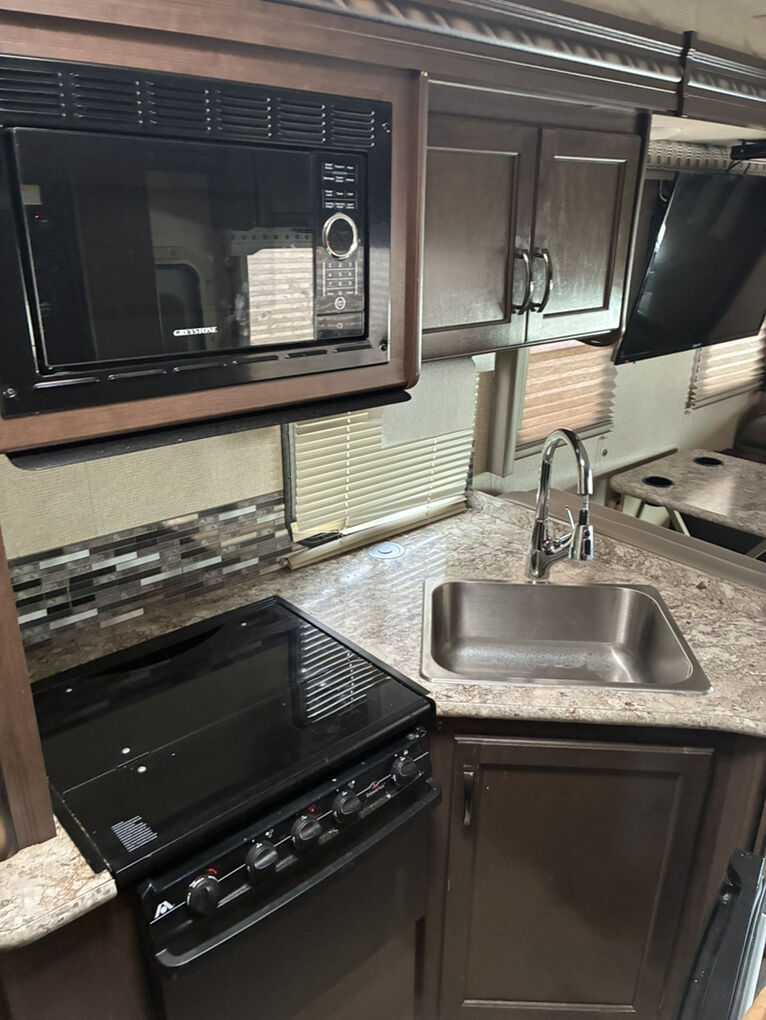 • Exterior: Power awning, outdoor shower, and backup camera