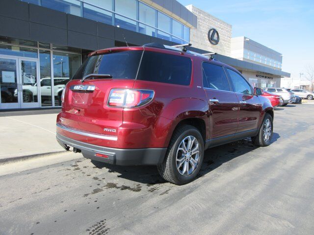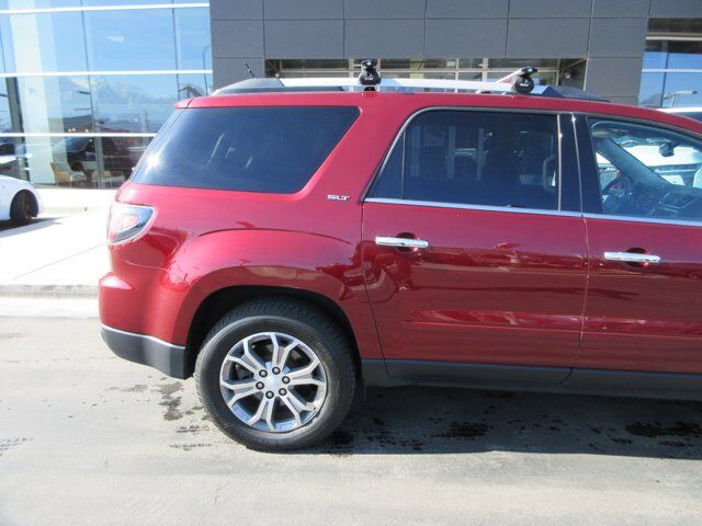Racy yet refined, this 2015 GMC Acadia practically sings Puccini. With a Gas V6 3.6L/220 engine powering this Automatic transmission, you will take joy in the thrilling ease with which you commandeer the highway. It comes equipped with these options: LICENSE PLATE BRACKET, FRONT, COOLING SYSTEM, HEAVY-DUTY, Wipers, front intermittent with washers, Wiper, rear intermittent with washer, Universal Home Remote includes garage door opener, 3-channel programmable, Suspension, Ride and Handling, Steering, power, variable effort, StabiliTrak, stability control system with traction control, Spoiler, rear, and SiriusXM Satellite Radio (subscription required) . Visit Lexus of Murray at 5686 S State St, Murray, UT 84107 today.