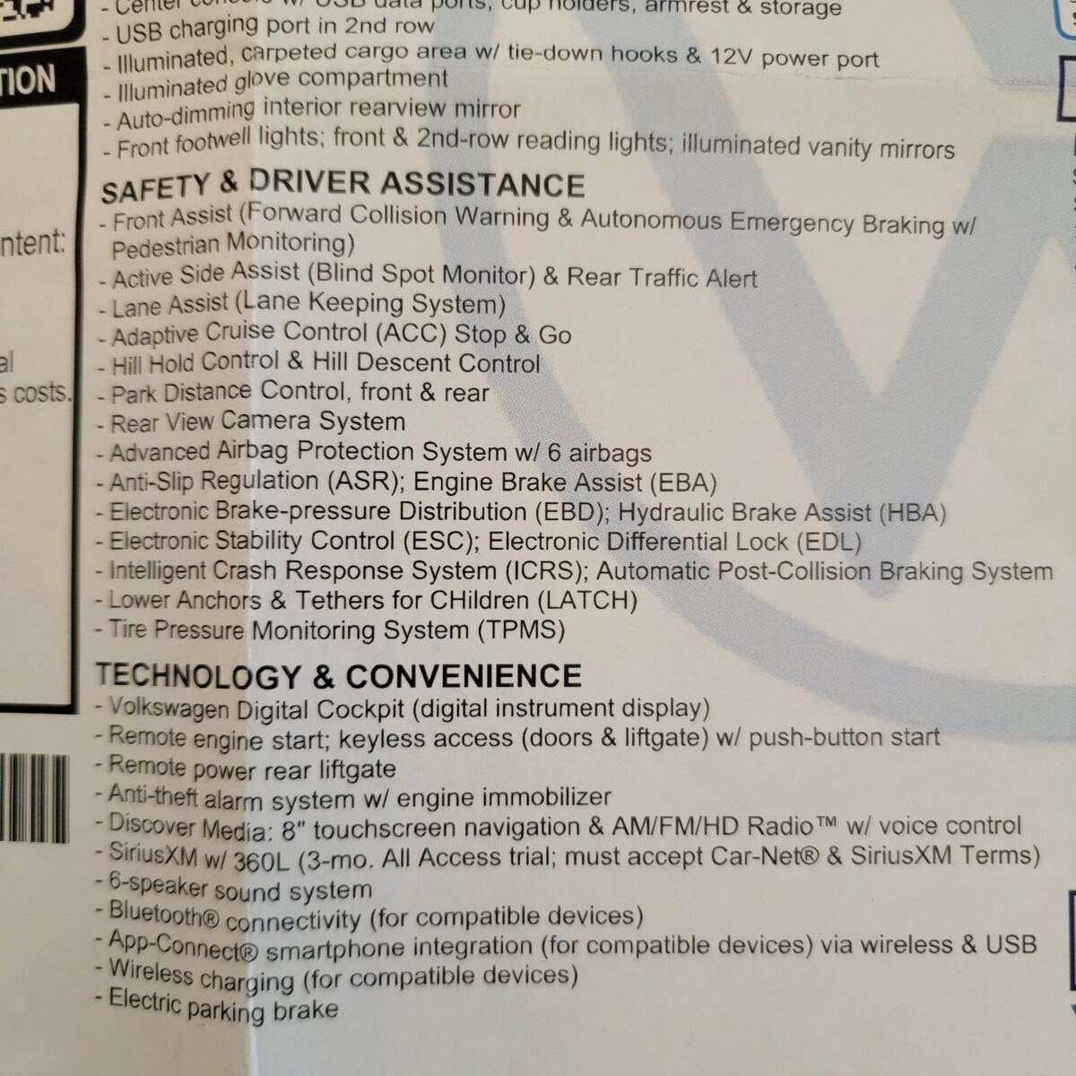 Gets about 25 mpg overall, and 27 mpg on the highway. This Tiguan 2.0T SEL comes with a lot of tech, features, and additional options (see pictures for full list of features). A manufacturer's towing package was also added from the dealership shortly after purchasing the vehicle (only used to occasionally connect a bike rack).