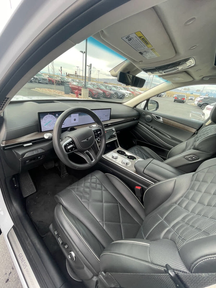 Leather Seats, Navigation, Power Liftgate, Rear Air, Heated Driver Seat, Heated Rear Seat, Cooled Driver Seat, Cooled Rear Seat. Rear Spoiler, MP3 Player, Remote Trunk Release, Privacy Glass. Serviced here, Non-Smoker vehicle, Originally bought here Genesis Prestige with Alta White exterior and Obsidian Black interior features a V6 Cylinder Engine with 375 HP at 5800 RPM*.
