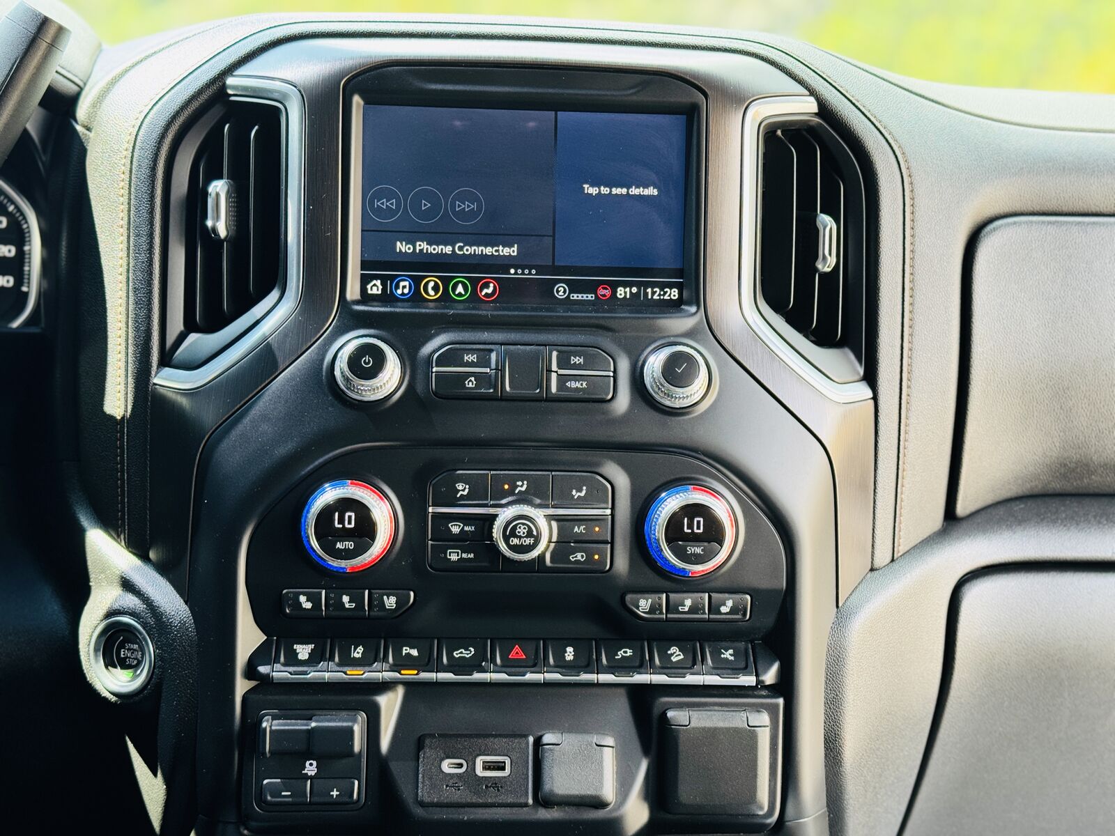 Large touchscreen infotainment system with smartphone integration.