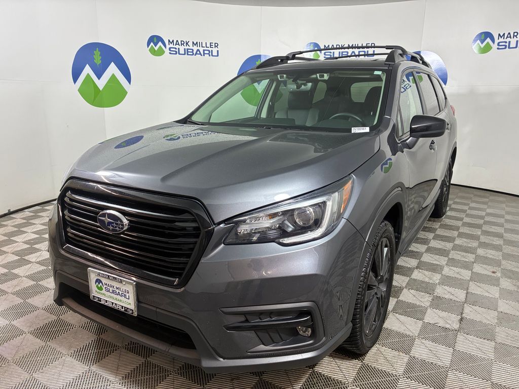 This 2022 Magnetite Gray Metallic Subaru Ascent Onyx Edition AWD is well equipped and includes these features and benefits: PMR Navi TC (Cargo Area Cover, Dual Glass Panoramic Power Moonroof, and Radio: Subaru STARLINK 8.0'' Multimedia Nav System), 2nd Row Captain's Chairs Rear Seatback Protector, 3rd Row Bench Rear Seatback Protector, 3rd row seats: bench, 4-Wheel Disc Brakes, 6 Speakers, ABS brakes, Aero Crossbar Set, Air Conditioning, Alloy wheels, AM/FM radio: SiriusXM, Auto High-beam Headlights, Auto-Dimming Mirror w/Compass & HomeLink, Auto-dimming Rear-View mirror, Automatic temperature control, Axle Ratio: 4.44, Brake assist, Bumpers: body-color, CD player, Compass, Delay-off headlights, Driver door bin, Driver vanity mirror, Dual front impact airbags, Dual front side impact airbags, Electronic Stability Control, Emergency communication system: STARLINK Safety and Security (Subscription Required), Exterior Parking Camera Rear, Four wheel independent suspension, Front anti-roll bar, Front Bucket Seats, Front Center Armrest, Front dual zone A/C, Front fog lights, Front reading lights, Fully automatic headlights, Garage door transmitter: HomeLink, Heated door mirrors, Heated Front Bucket Seats, Heated front seats, Heated steering wheel, Illuminated entry, Knee airbag, Low tire pressure warning, Occupant sensing airbag, Outside temperature display, Overhead airbag, Overhead console, Panic alarm, Passenger door bin, Passenger vanity mirror, Power door mirrors, Power driver seat, Power Liftgate, Power steering, Power windows, Radio data system, Radio: Subaru STARLINK 8.0'' Multimedia Plus System, Rear air conditioning, Rear anti-roll bar, Rear reading lights, Rear window defroster, Rear window wiper, Reclining 3rd row seat, Remote keyless entry, Security system, Speed control, Split folding rear seat, Spoiler, STARLINK/Apple CarPlay/Android Auto, StarTex Upholstery, Steering wheel mounted audio controls, Tachometer, Telescoping steering wheel, Tilt steering wheel, Traction control, Trip computer, Variably intermittent wipers, and Wheels: 20'' x 7.5 J Black Finish Alloy.