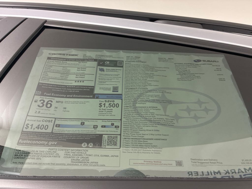 Mark Miller Subaru is the leading Subaru dealership in Utah. Our large inventory and dedicated sales teams has made us the go to destination for the Subaru brand in Utah. Our Promise Price is the best way to buy a Subaru in Utah. Come experience the Mark Miller Subaru difference today! ** This 2026 Ice Silver Metallic Subaru Crosstrek Hybrid Limited AWD is well equipped and includes these features and benefits: Crosstrek Mirror Package (Auto-Dimming Exterior Mirror with Approach Light and Auto-Dimming Mirror with Compass and HomeLink), Power Moonroof and Surround View Monitor (360 Surround View Monitor and Power Moonroof), 2.5L 4-Cylinder DOHC 16V, 10 Speakers, 4-Wheel Disc Brakes, ABS brakes, Air Conditioning, All-Weather Floor Liners, Alloy wheels, AM/FM radio: SiriusXM, Anti-whiplash front head restraints, Auto High-beam Headlights, Automatic temperature control, Brake assist, Bumpers: body-color, Compass, Driver door bin, Driver vanity mirror, Dual front impact airbags, Dual front side impact airbags, Electronic Stability Control, Emergency communication system: MySubaru Companion (5-years free), Exterior Parking Camera Rear, Four wheel independent suspension, Front anti-roll bar, Front Bucket Seats, Front Center Armrest, Front dual zone A/C, Front fog lights, Front reading lights, Fully automatic headlights, harman/kardon® Speakers, Heated door mirrors, Heated Front Bucket Seats, Heated front seats, Heated steering wheel, Illuminated entry, Knee airbag, Leather Shift Knob, Leather steering wheel, Low tire pressure warning, Navigation System, Occupant sensing airbag, Outside temperature display, Overhead airbag, Overhead console, Panic alarm, Passenger door bin, Passenger vanity mirror, Perforated StarTex Upholstery, Power door mirrors, Power driver seat, Power steering, Power windows, Radio data system, Radio: Subaru 11.6'' Multimedia Navigation System, Rear anti-roll bar, Rear Bumper Cover, Rear seat center armrest, Rear side impact airbag, Rear window defroster, Rear window wiper, Remote keyless entry, Security system, Speed control, Speed-sensing steering, Split folding rear seat, Spoiler, Steering wheel mounted audio controls, Tachometer, Telescoping steering wheel, Tilt steering wheel, Traction control, Trip computer, Turn signal indicator mirrors, Variably intermittent wipers, and Wheels: 18'' x 7.0'' J Dark Gray Aluminum-Alloy **
