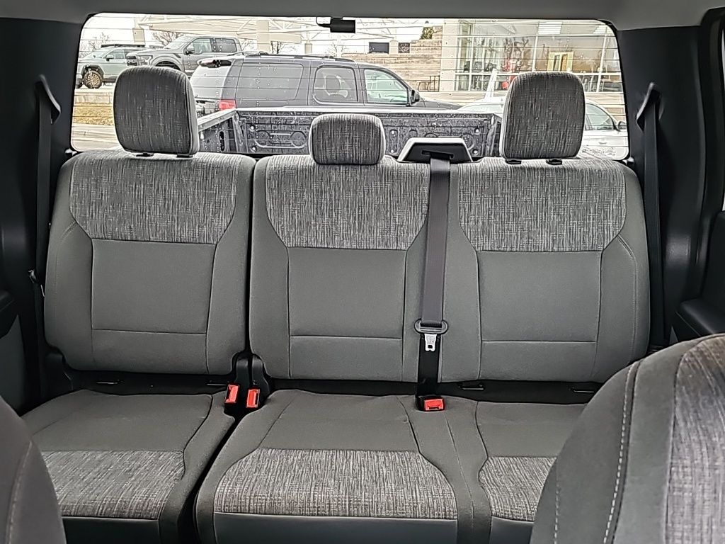 This interior is designed with both work and comfort in mind. This bench seat up front means you can haul six people without cramming, making it great for work crews, family trips, or just having extra space. This cloth upholstery is durable yet comfortable, and the fold-down center console transforms into a workspace when needed. This 12-inch touchscreen with SYNC 4 keeps you connected, offering Apple CarPlay, Android Auto, and a built-in navigation system.