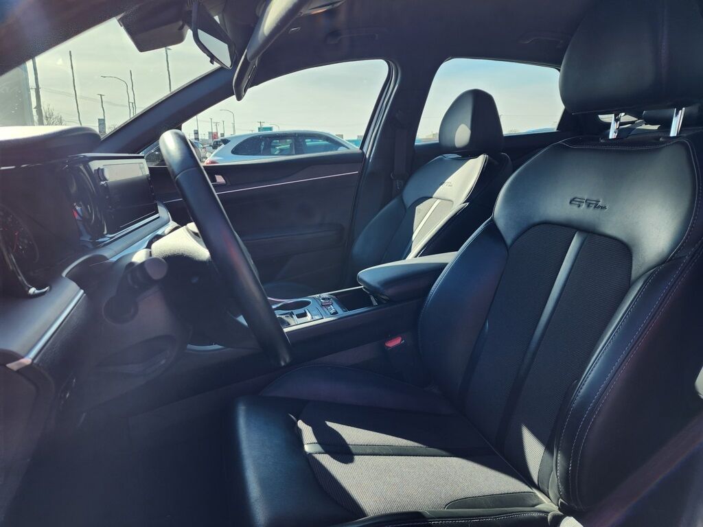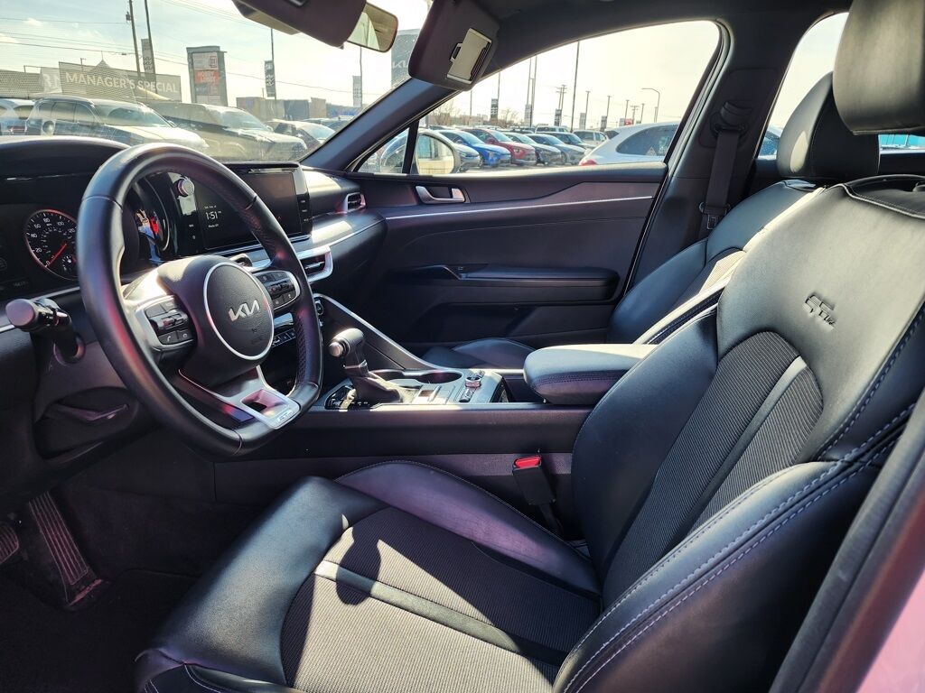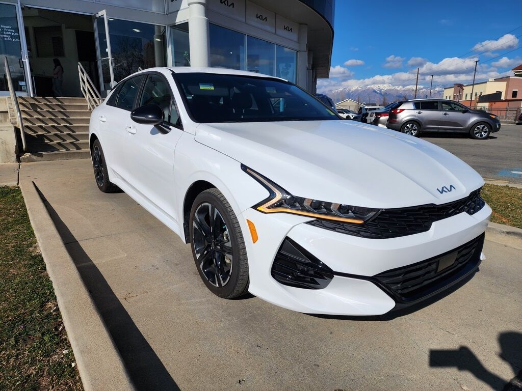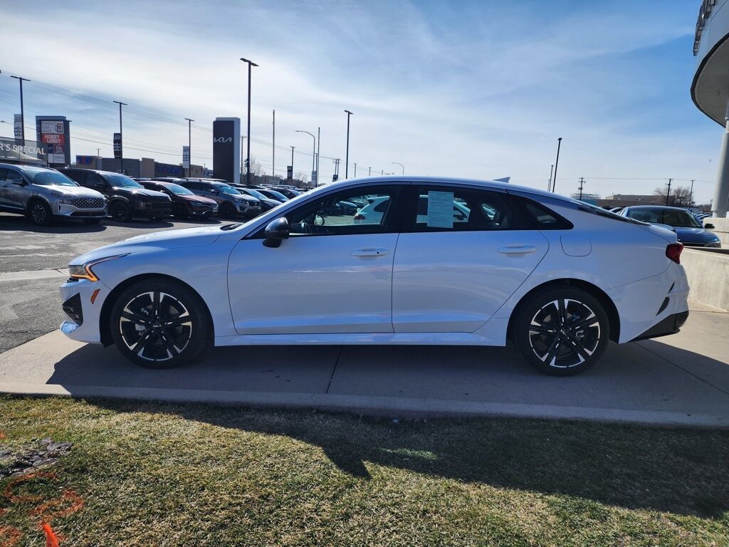 CARFAX One-Owner. Certified. Glacial White Pearl 2024 Kia K5 GT-Line FWD 8-Speed Automatic 1.6L I4 DGI Turbocharged DOHC 16V LEV3-ULEV70 180hp Kia Certified Pre-Owned Certified, 4-Wheel Disc Brakes, 6 Speakers, ABS brakes, Air Conditioning, Alloy wheels, AM/FM radio: SiriusXM, Apple CarPlay & Android Auto, Auto High-beam Headlights, Automatic temperature control, Brake assist, Bumpers: body-color, Carpeted Floor Mats, Cloth/SynTex Seat Trim, Delay-off headlights, Driver door bin, Driver vanity mirror, Dual front impact airbags, Dual front side impact airbags, Electronic Stability Control, Forward Collision Avoidance-Assist, Four wheel independent suspension, Front anti-roll bar, Front Bucket Seats, Front Center Armrest, Front dual zone A/C, Front fog lights, Front reading lights, Fully automatic headlights, GT-Line Premium Package, Heated door mirrors, Heated Front Bucket Seats, Heated front seats, Highway Driving Assist, Illuminated entry, Knee airbag, Leather steering wheel, LED Projection Headlamps, Low tire pressure warning, Navigation System, Occupant sensing airbag, Outside temperature display, Overhead airbag, Overhead console, Panic alarm, Passenger door bin, Passenger vanity mirror, Power door mirrors, Power driver seat, Power steering, Power windows, Radio data system, Radio: AM/FM/MP3 Audio System, Rear anti-roll bar, Rear seat center armrest, Rear side impact airbag, Rear window defroster, Remote keyless entry, Security system, Smart Cruise Control w/Stop & Go, Speed control, Speed-sensing steering, Split folding rear seat, Spoiler, Sport steering wheel, Steering wheel mounted audio controls, Tachometer, Telescoping steering wheel, Tilt steering wheel, Traction control, Trip computer, Turn signal indicator mirrors, Variably intermittent wipers, Wheels: 18'' Gloss Black Machined Finish Alloy.