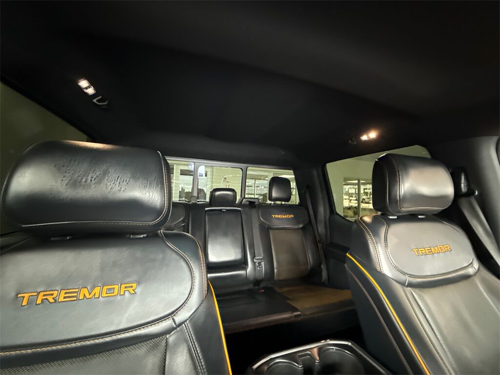 4WD, 12'' Productivity Screen in Instrument Cluster, 4-Wheel Disc Brakes, 6 Speakers, ABS brakes, Advanced Security Pack, Air Conditioning, Alloy wheels, AM/FM radio: SiriusXM with 360L, Ambient Lighting, Auto High Beam, Auto High-beam Headlights, Auto Start-Stop Removal, Bed Utility Package, Body-Color Door Handles w/Body-Color Bezel, BoxLink, Brake assist, Bumpers: body-color, Carpeted Floor Mats w/Tremor Logo, Class IV Trailer Hitch Receiver, Compass, Connected Built-In Navigation (DISC), Delay-off headlights, Driver door bin, Dual front impact airbags, Dual front side impact airbags, Electronic Locking w/3.73 Axle Ratio, Electronic Stability Control, Emergency communication system: SYNC 4 911 Assist, Equipment Group 402A High, Exterior Parking Camera Rear, Ford Co-Pilot360 Assist 2.0 (DISC), Front anti-roll bar, Front Bucket Seats, Front Center Armrest, Front fog lights, Front License Plate Bracket, Front reading lights, Front wheel independent suspension, Front-Axle w/Torsen Differential, Fully automatic headlights, GVWR: 7,050 lbs Payload Package, Heated door mirrors, Illuminated entry, Integrated Trailer Brake Controller, Interior Work Surface, Lane-Keeping System, LED Box Lighting, Low tire pressure warning, Navigation system: Connected Navigation, Occupant sensing airbag, Onboard 400W Outlet, Outside temperature display, Overhead airbag, Overhead console, Panic alarm, Passenger door bin, Passenger vanity mirror, Power door mirrors, Power Glass Sideview Mirr w/Body-Color Skull Caps, Power steering, Power windows, Pre-Collision Assist w/Automatic Emergency Braking, Pro Trailer Backup Assist, Radio data system, Radio: AM/FM SiriusXM w/360L, Radio: B&O Sound System by Bang & Olufsen, Radio: B&O Unleashed Sound System by Bang & Olufsen, Rear reading lights, Rear step bumper, Rear window defroster, Rear-View Camera, Remote keyless entry, Security system, Speed control, Speed-sensing steering, Split folding rear seat, Steering wheel mounted audio controls, SYNC 4 w/Enhanced Voice Recognition, Tachometer, Tailgate Step w/Tailgate Work Surface, Telescoping steering wheel, Tilt steering wheel, Traction control, Trail Control, Trailer Tow Package, Trip computer, Unique Sport Cloth 40/Console/40 Front Seat, Unique Tremor Leather-Trimmed Bucket Seats, Variably intermittent wipers, Voltmeter, Wheels: 18'' Alloy w/Dark Matte Finish, Wireless Charging Pad, Zone Lighting, 4WD.