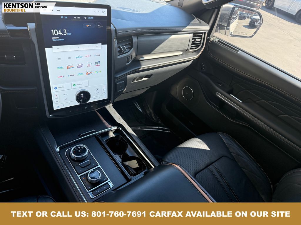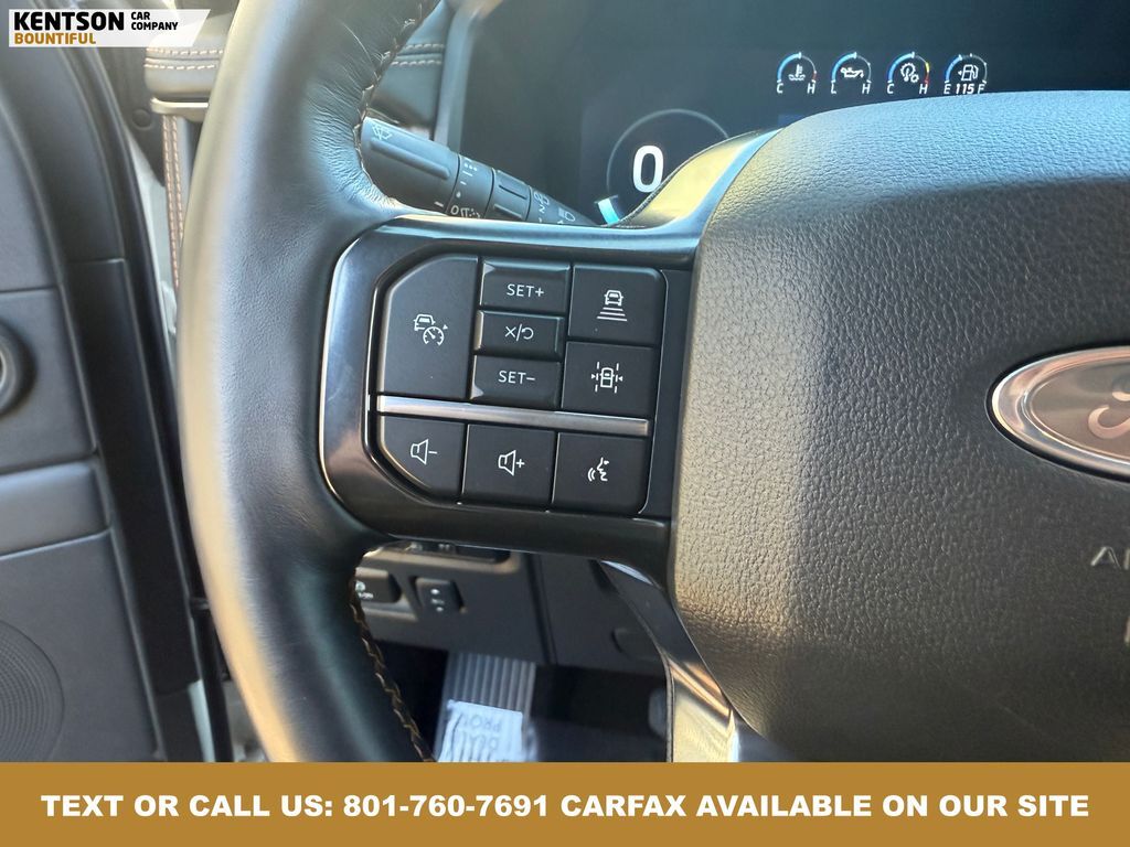 Equipment Group 600A Standard Package, 4WD, 22 Speakers, 3.31 Axle Ratio, 3rd row seats: split-bench, 4-Wheel Disc Brakes, ABS brakes, Adaptive suspension, Adjustable pedals, Air Conditioning, Alloy wheels, AM/FM radio: SiriusXM with 360L, Auto High-beam Headlights, Auto-dimming door mirrors, Auto-dimming Rear-View mirror, Automatic temperature control, Brake assist, Bumpers: body-color, Compass, Delay-off headlights, Driver door bin, Driver vanity mirror, Dual front impact airbags, Dual front side impact airbags, Electronic Stability Control, Emergency communication system: SYNC 4 911 Assist, Exterior Parking Camera Rear, Four wheel independent suspension, Front anti-roll bar, Front Bucket Seats, Front Center Armrest, Front dual zone A/C, Front fog lights, Front reading lights, Fully automatic headlights, Garage door transmitter, Genuine wood console insert, Genuine wood dashboard insert, Genuine wood door panel insert, Heated door mirrors, Heated front seats, Heated rear seats, Heated steering wheel, Heated/Ventilated Prem Lthr Front Captain's Chairs, Illuminated entry, Leather steering wheel, Low tire pressure warning, Memory seat, Navigation system: Connected Navigation, Occupant sensing airbag, Outside temperature display, Overhead airbag, Overhead console, Panic alarm, Passenger door bin, Passenger vanity mirror, Pedal memory, Power door mirrors, Power driver seat, Power Liftgate, Power moonroof, Power passenger seat, Power steering, Power windows, Radio data system, Radio: B&O Unleashed Sound System by Bang & Olufsen, Rain sensing wipers, Rear air conditioning, Rear anti-roll bar, Rear audio controls, Rear reading lights, Rear window defroster, Rear window wiper, Reclining 3rd row seat, Remote keyless entry, Security system, SiriusXM w/360L, Speed control, Speed-sensing steering, Speed-Sensitive Wipers, Split folding rear seat, Spoiler, Steering wheel memory, Steering wheel mounted audio controls, SYNC 4 w/Enhanced Voice Recognition, Tachometer, Telescoping steering wheel, Tilt steering wheel, Traction control, Trip computer, Turn signal indicator mirrors, Variably intermittent wipers, Ventilated front seats, Voltmeter, and Wheels: 22'' 12-Spoke Polished Aluminum.
