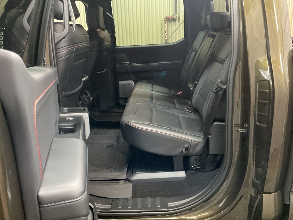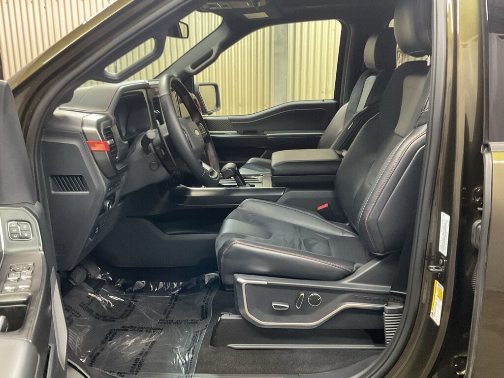 Equipment Group 802A Raptor 37: Electronic Locking with 4.10 Axle Ratio; Dual Valve Shocks; Raptor 37 Unique 17" Forged Cast Wheels; Carbon Fiber Interior Appliques; Alcantara Suede and Leather RECARO Front Seats; Modular Front Bumper; 3.5L V6 EcoBoost High Output Engine; Electronic 10-Speed Automatic Transmission; 37x12.5R17 BSW All-Terrain Tires; 7,400 lbs GVWR; B&O Unleashed Sound System by Bang & Olufsen Radio,Twin Panel Moonroof,Tough Bed Spray-In Bedliner,SYNC 4 AppLink/Apple CarPlay/Android Auto smart device wireless mirroring,Lane departure prevention,Pre-Collision Assist with Automatic Emergency Braking (AEB) forward collision mitigation,Pedestrian impact prevention,FordPass Connect 5G mobile hotspot internet access,Reverse Camera rear mounted camera,Reverse Brake Assist collision mitigation,Adaptive Cruise Control with Stop-and-Go,Head-up display,Brake assist system,Cruise control with steering wheel mounted controls,Pro Access Tailgate power open and close tailgate,Ventilated driver and front passenger seats,Connected Navigation integrated navigation system with voice activation,Keyfob remote start,Heated steering wheel,Heated driver and front passenger seats,Heated rear seats,Simulated suede and leather front seat upholstery,Primary monitor touchscreen,First and second-row sliding and tilting glass sunroof with express open/close activation sunshade,Driver seat power reclining, lumbar support, cushion tilt, fore/aft control and height adjustable control,Part and full-time 4WD,EcoBoost 3.5L V-6 port/direct injection, DOHC, variable valve control, twin turbo, regular unleaded, engine with 450HP,EcoBoost 3.5L V-6 DOHC,Front wireless smart device charging,SYNC 4 with Enhanced Voice Recognition (Alexa-Built-In) built-in virtual assistant,Driver attention alert,Speed Sign Recognition with automatic speed limit assist,External keypad door lock control,Smart key with hands-free access and push button start,360 Degree Camera aerial view camera,Smart device remote start,Push-button,Automatic brake hold,Bluetooth wireless audio streaming,Pro Trailer Backup Assist vehicle and trailer reverse assist,Pro Trailer Hitch Assist automated vehicle to trailer hitching assist,Gauge cluster display size: 12.00,Front mounted camera with washer,Right side camera,Pickup box camera,Left side camera,BLIS (Blind Spot Information System),Dual-zone front climate control,SYNC 4 with Enhanced Voice Recognition (Alexa-Built-In) voice-activated climate control,Rock Crawl Mode off-road speed control,Directionally adaptive headlights,Auto High Beam auto high-beam headlights,SecuriLock immobilizer