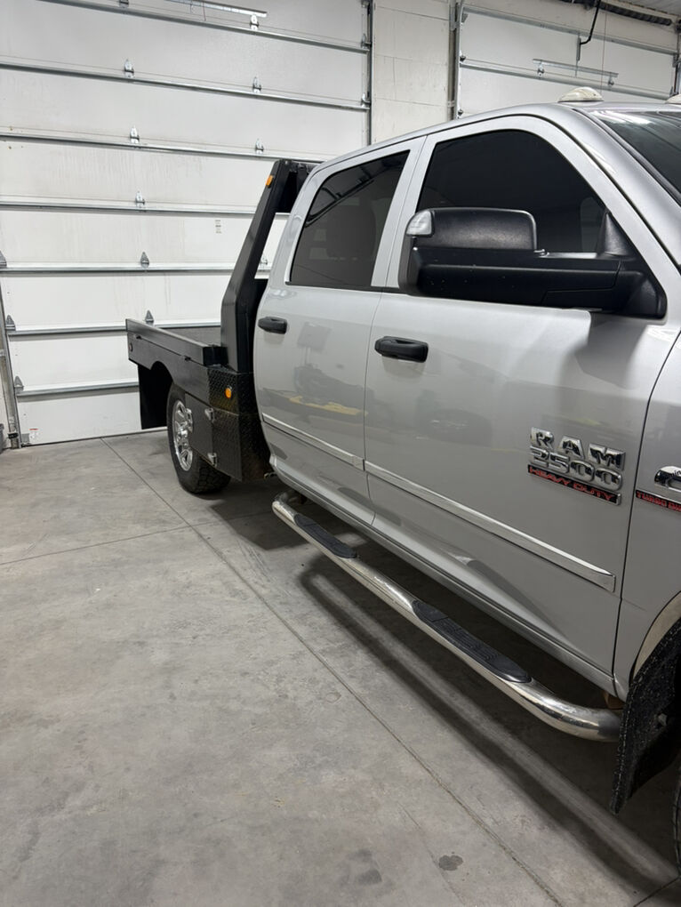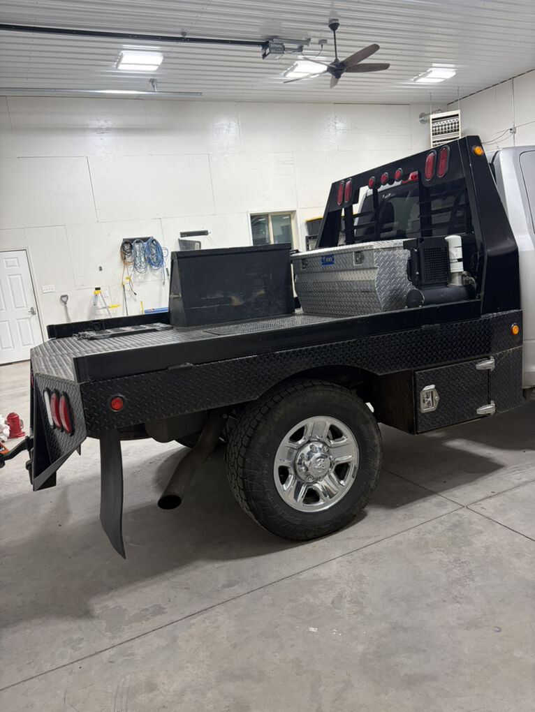 bradford built flatbed with fold down sides at 50,000 miles it got a new transmission with a shift kit for towing