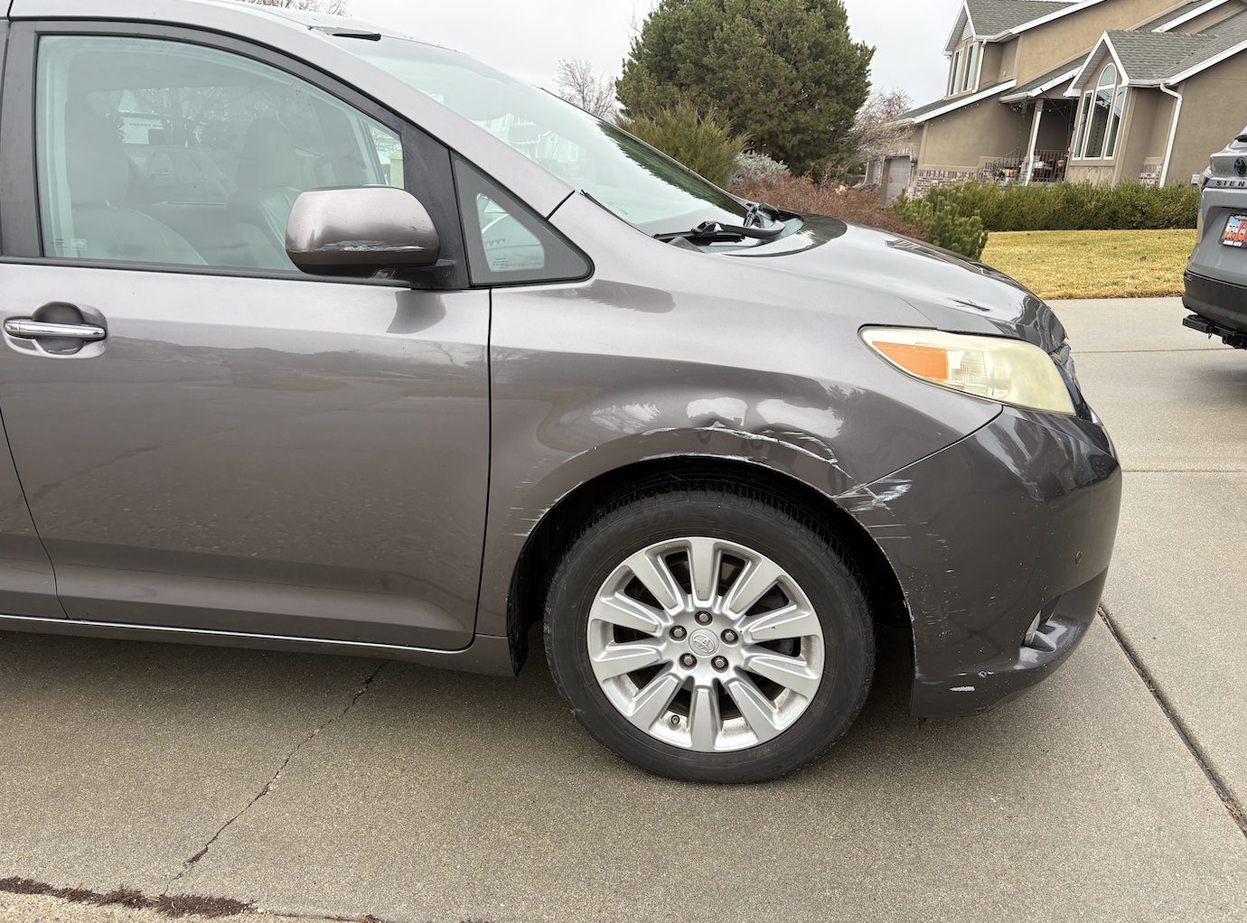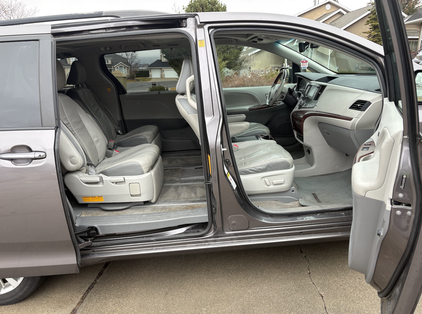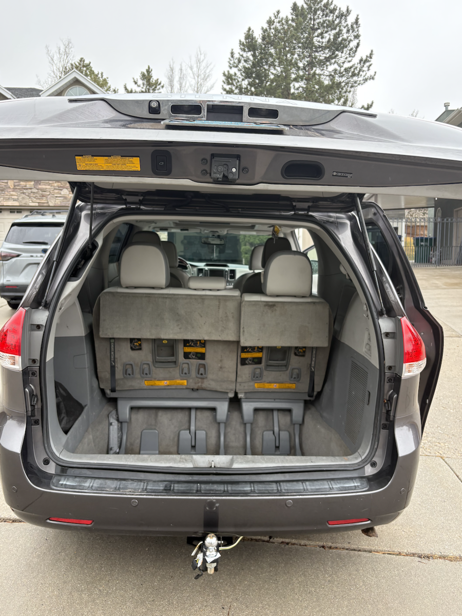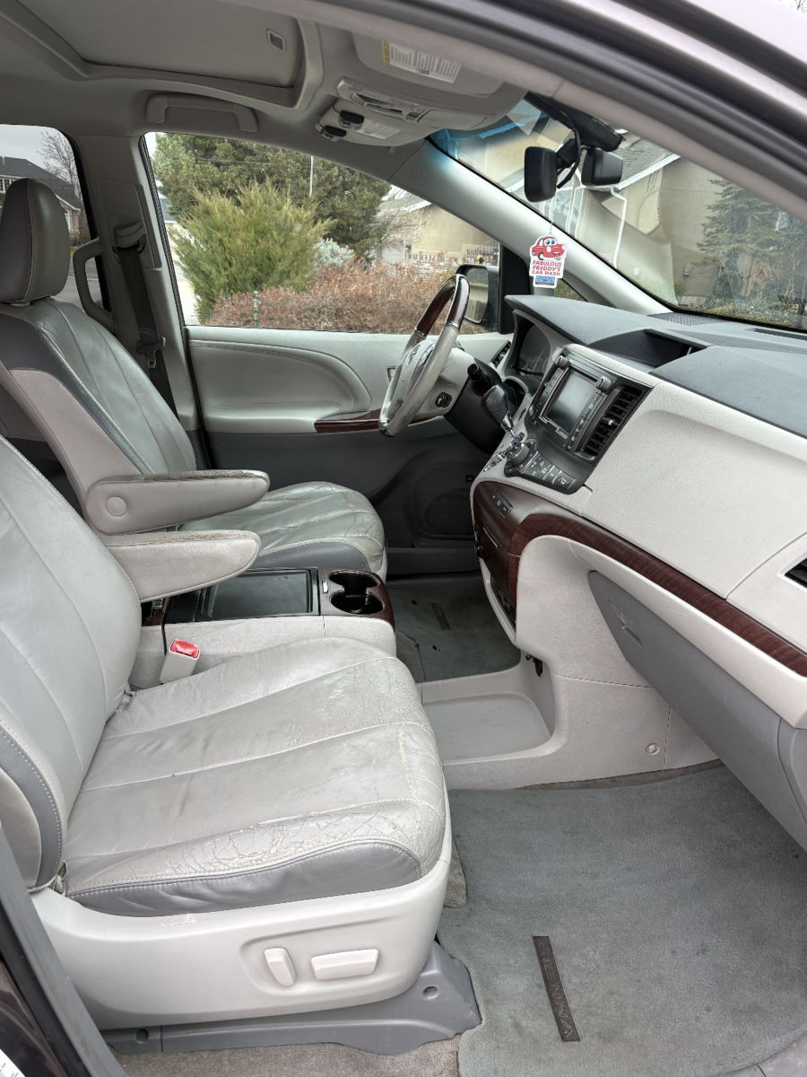 Used 2012 Toyota Sienna Limited. Well loved family vehicle. There are signs of wear on the inside, including some stains and worn leather. There is a scrape above the front right tire due to hitting the side of the garage door opening when exiting the garage. Mechanically in very good shape. No transmission issues. New battery, tires, and a couple of other electronic components a little over a year ago.