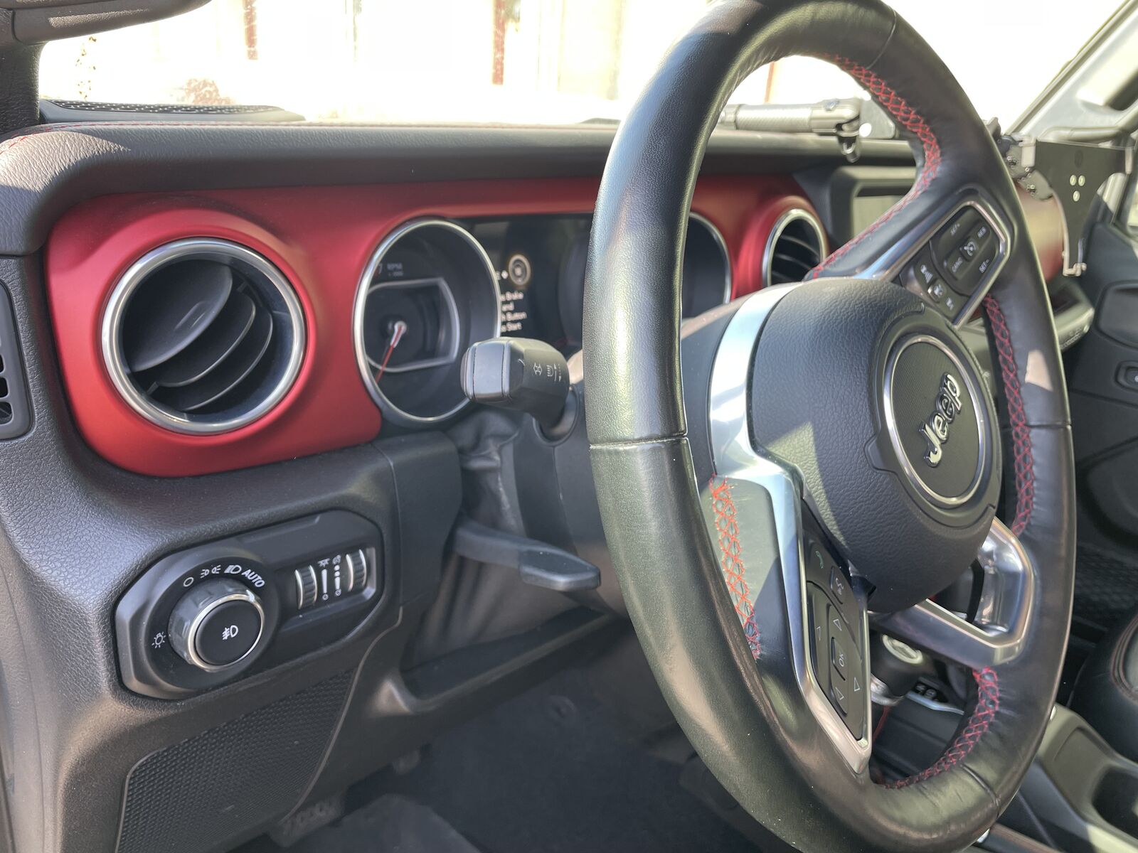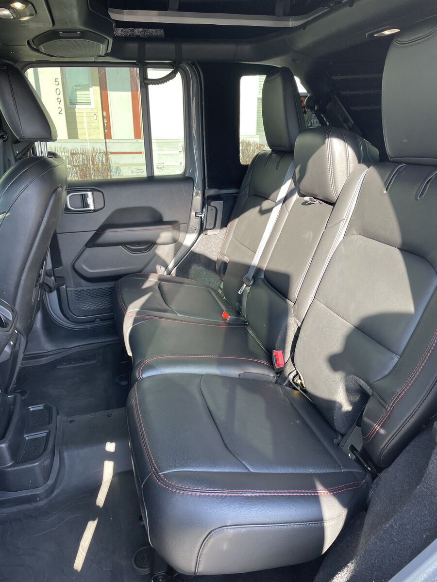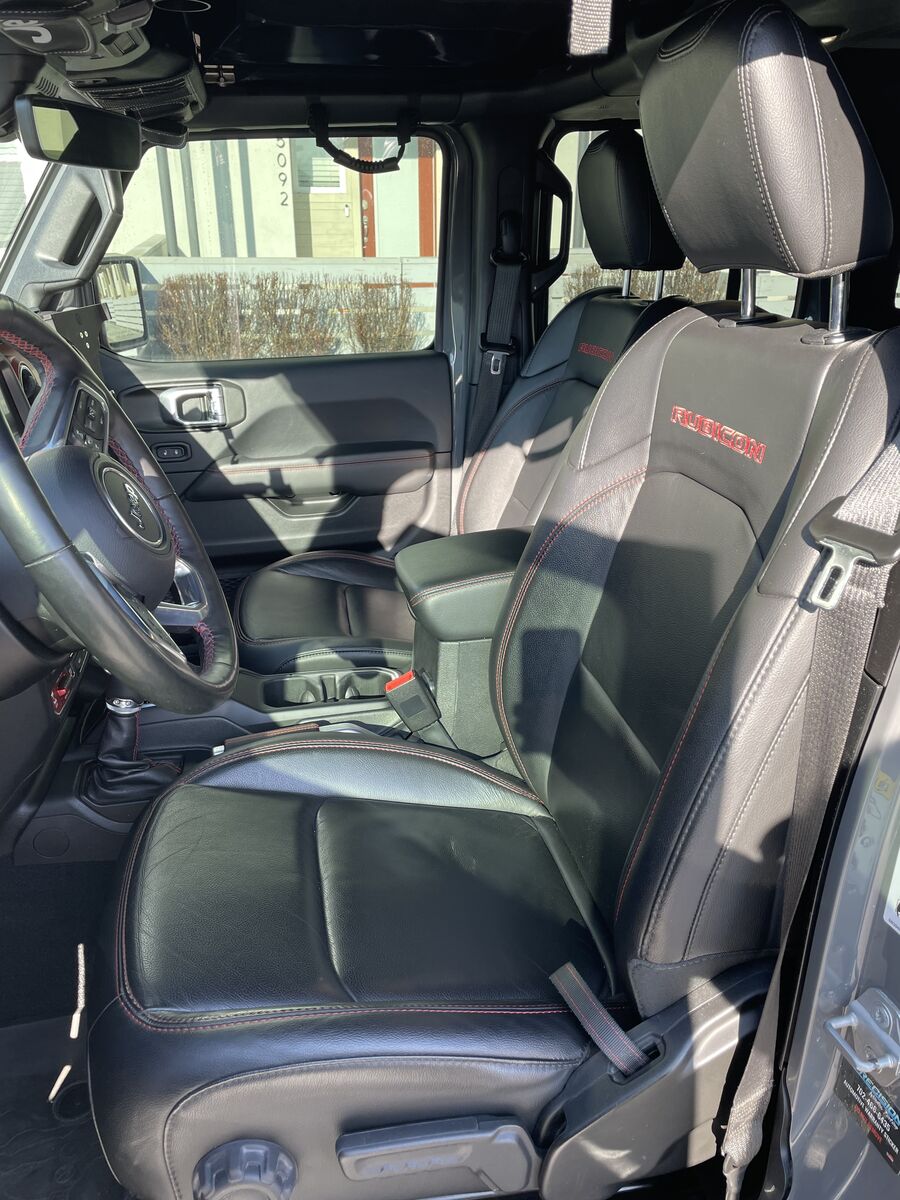 Jeep Wrangler Rubicon trim(Premium black leather interior with Rubicon Red Stitching), locking differentials, electronic sway bar disconnect, heavy-duty axles, oversized alternator and Battery, Rock rails and full undercarriage skid plate protection