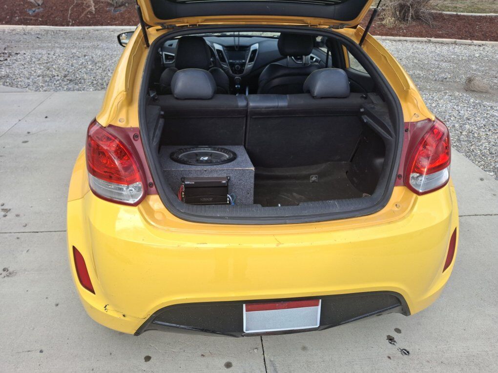 2016 Hyundai Veloster. Runs great, shifts great. does not include the subwooferEverything works as it should. 36mpg highway, 26 mpg in town. I've done several repairs in ownership: Replaced touchscreen, replaced the climate controll module(below the screen with the ac selector and buttons) as well as the trunk latch and I also replaced the catalytic converter. Brakes have also been replaced less than 100 miles ago. and the headlight bulbs are bright and brand new. The previous owner replaced the alternator. Car is amazing condition and is taken great care of. All quality parts. the bumble bee and black stripe on the side is just vinyl and easily removable if desired. If the listing is up, its still available. NO TRADES