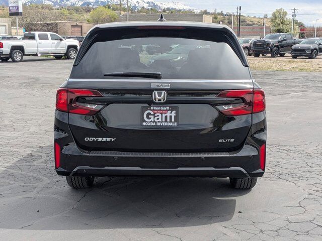 Ken Garff Honda is honored to offer this good-looking 2026 Honda Odyssey Elite in Crystal Black Pearl. FWD Elite 10-Speed Automatic11 Speakers, 3rd row seats: split-bench, 4-Wheel Disc Brakes, ABS brakes, Adaptive Cruise Control: Adaptive Cruise Control (ACC) with Low-Speed Follow, Air Conditioning, Alloy wheels, AM/FM radio: SiriusXM, Anti-whiplash front head restraints, Apple CarPlay/Android Auto, Auto High-beam Headlights, Auto-dimming door mirrors, Auto-dimming Rear-View mirror, Automatic temperature control, Blind Spot Information (BSI) System warning, Brake assist, Bumpers: body-color, Compass, Delay-off headlights, Driver door bin, Driver vanity mirror, Driver's Seat Mounted Armrest, Dual front impact airbags, Dual front side impact airbags, Electronic Stability Control, Emergency communication system: HondaLink, Exterior Parking Camera Rear, Four wheel independent suspension, Front anti-roll bar, Front Bucket Seats, Front dual zone A/C, Front fog lights, Front reading lights, Fully automatic headlights, Garage door transmitter: HomeLink, Heated and Ventilated Front Bucket Seats, Heated door mirrors, Heated front seats, Heated steering wheel, Illuminated entry, Knee airbag, Lane departure: Lane Keeping Assist System (LKAS) active, Leather steering wheel, Low tire pressure warning, Memory seat, Navigation system: Honda Satellite-Linked Navigation System, Occupant sensing airbag, Outside temperature display, Overhead airbag, Overhead console, Panic alarm, Passenger door bin, Passenger seat mounted armrest, Passenger vanity mirror, Perforated Leather-Trimmed Seats with Piping, Power door mirrors, Power driver seat, Power Liftgate, Power moonroof, Power passenger seat, Power steering, Power windows, Radio data system, Radio: 500-Watt AM/FM/HD Premium Audio System, Rain sensing wipers, Rear air conditioning, Rear anti-roll bar, Rear audio controls, Rear reading lights, Rear seat center armrest, Rear window defroster, Rear window wiper, Reclining 3rd row seat, Remote keyless entry, Security system, Speed control, Speed-sensing steering, Speed-Sensitive Wipers, Split folding rear seat, Spoiler, Steering wheel mounted audio controls, Tachometer, Telescoping steering wheel, Tilt steering wheel, Traction control, Trip computer, Turn signal indicator mirrors, Variably intermittent wipers, Ventilated front seats, Wheels: 19 Machine-Finished Alloy.19/28 City/Highway MPG Fuel Economy estimates are based on EPA mileage ratings. Actual mileage will vary depending on driving conditions, habits, vehicle maintenance, and other factors. Advertised Prices do not include any dealer installed options and advertised prices exclude leases.