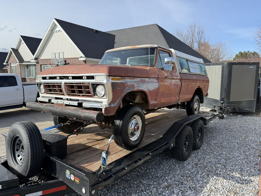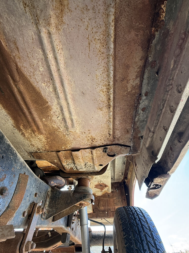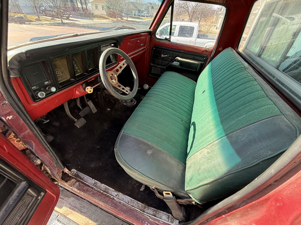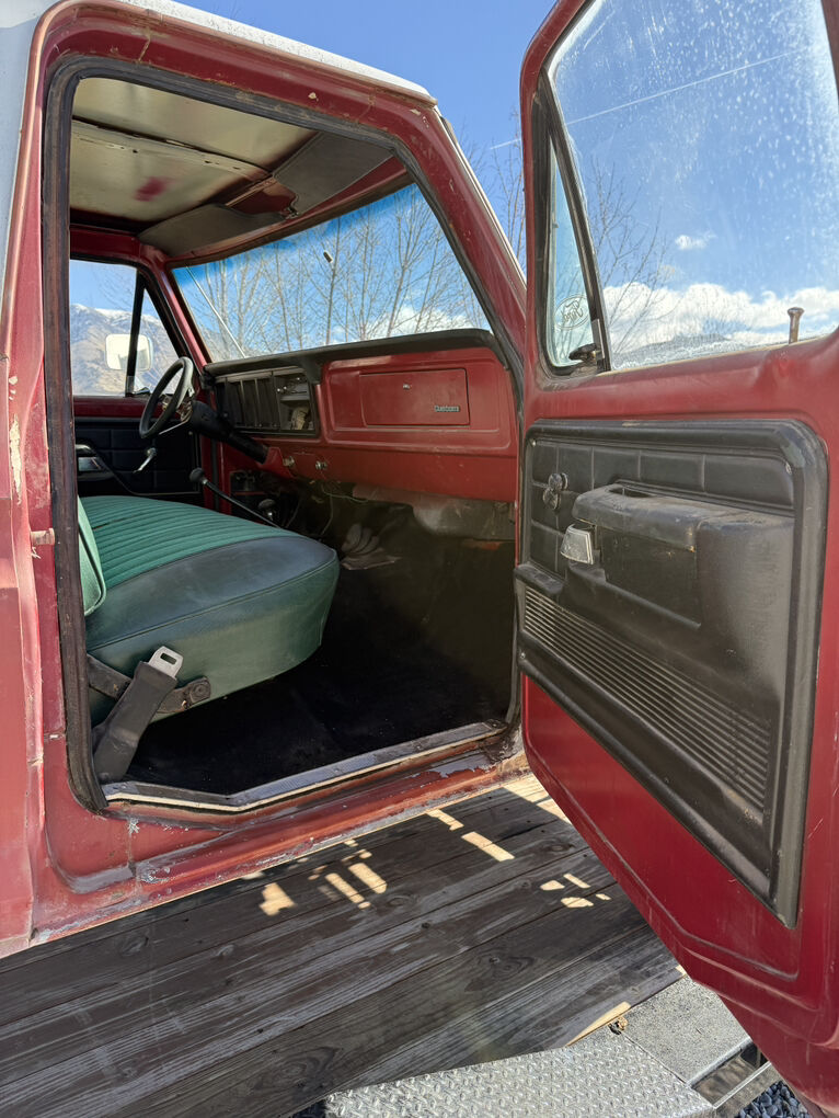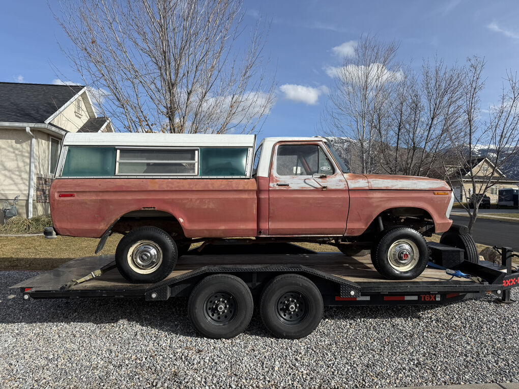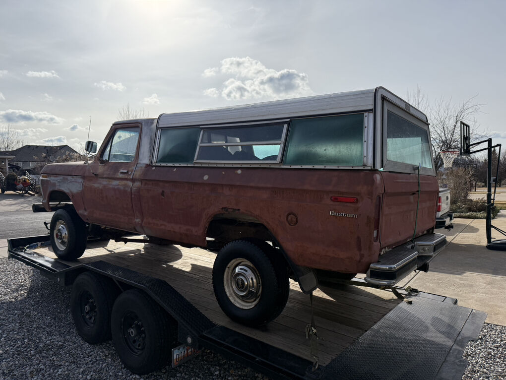 Extremely dry and original 1973 F250 4x4. Factory steel rims and hub caps, transmission and transfer case are there but the motor has been pulled. The only real rust is the drivers inside rocker. A 3 inch section of the drivers outer floor edge, over the rear wheel wells and a cab corner.