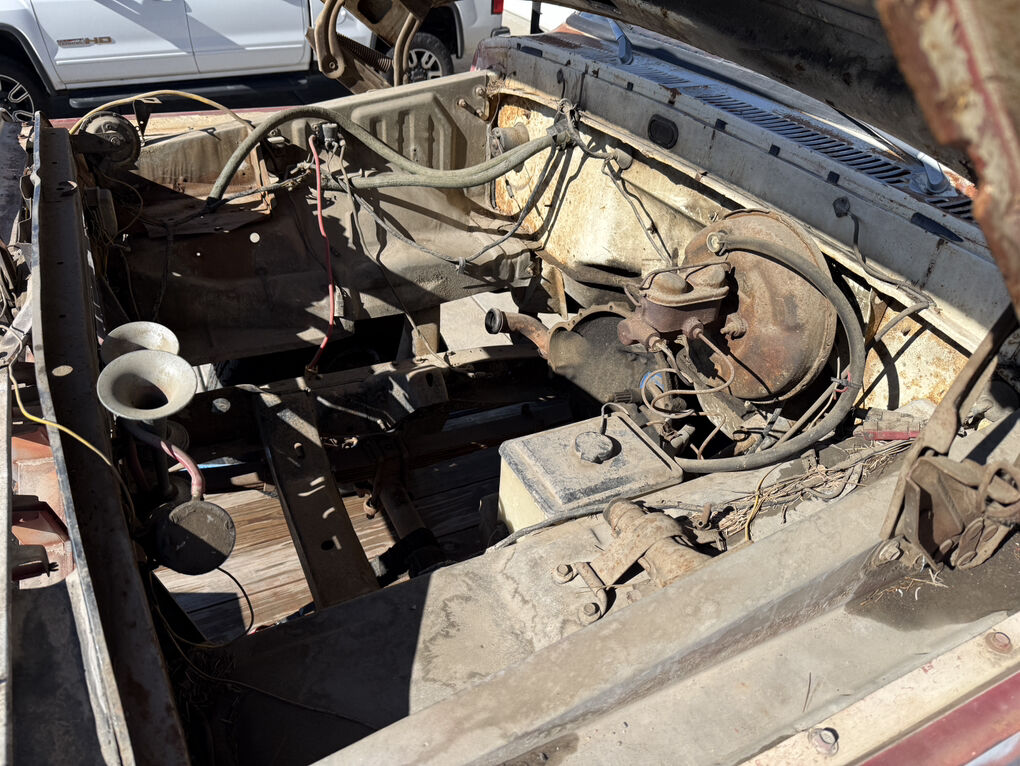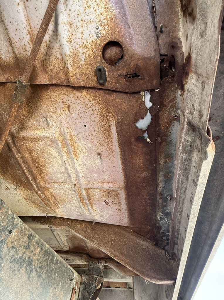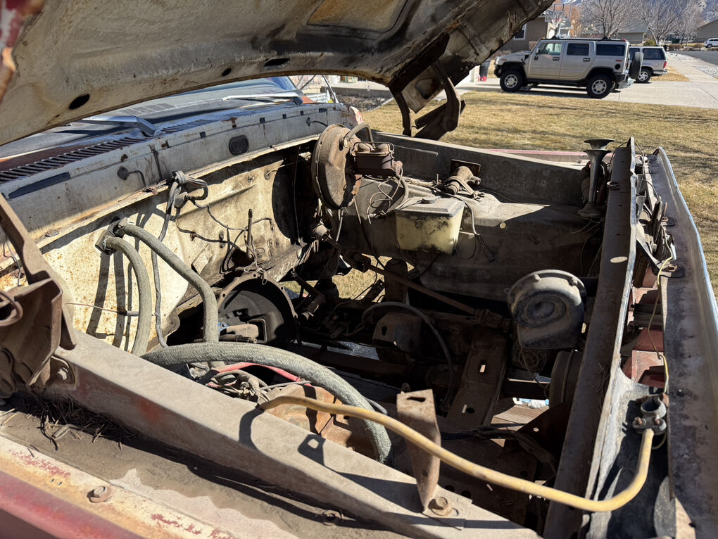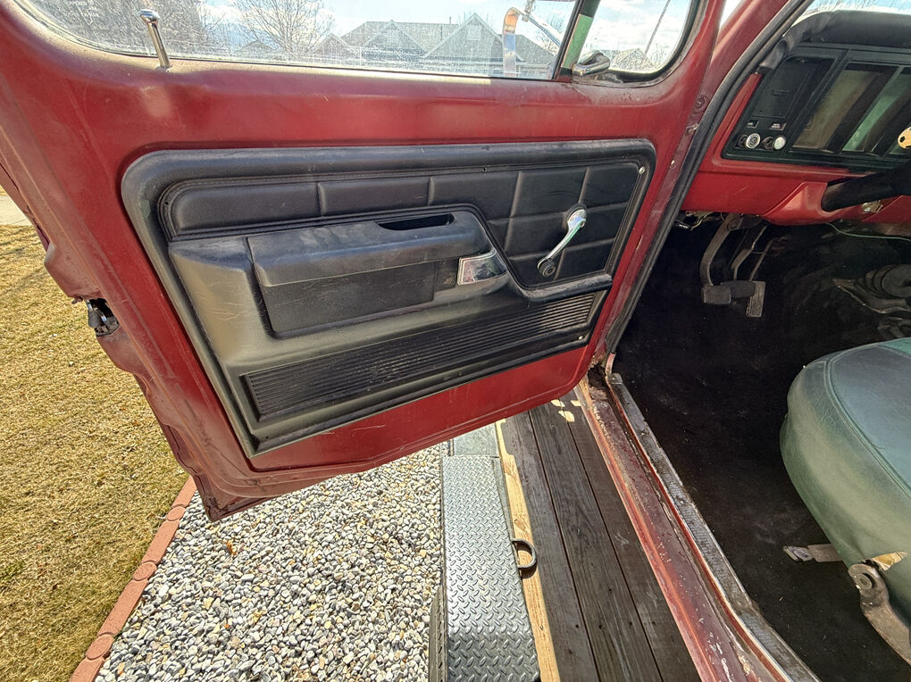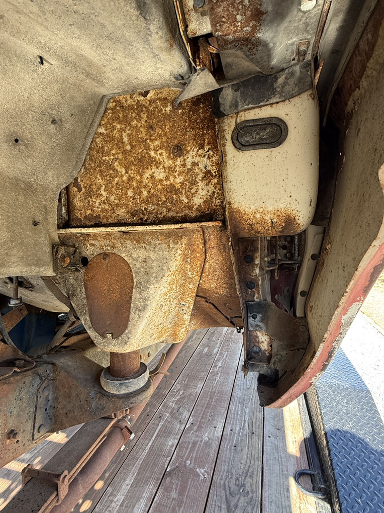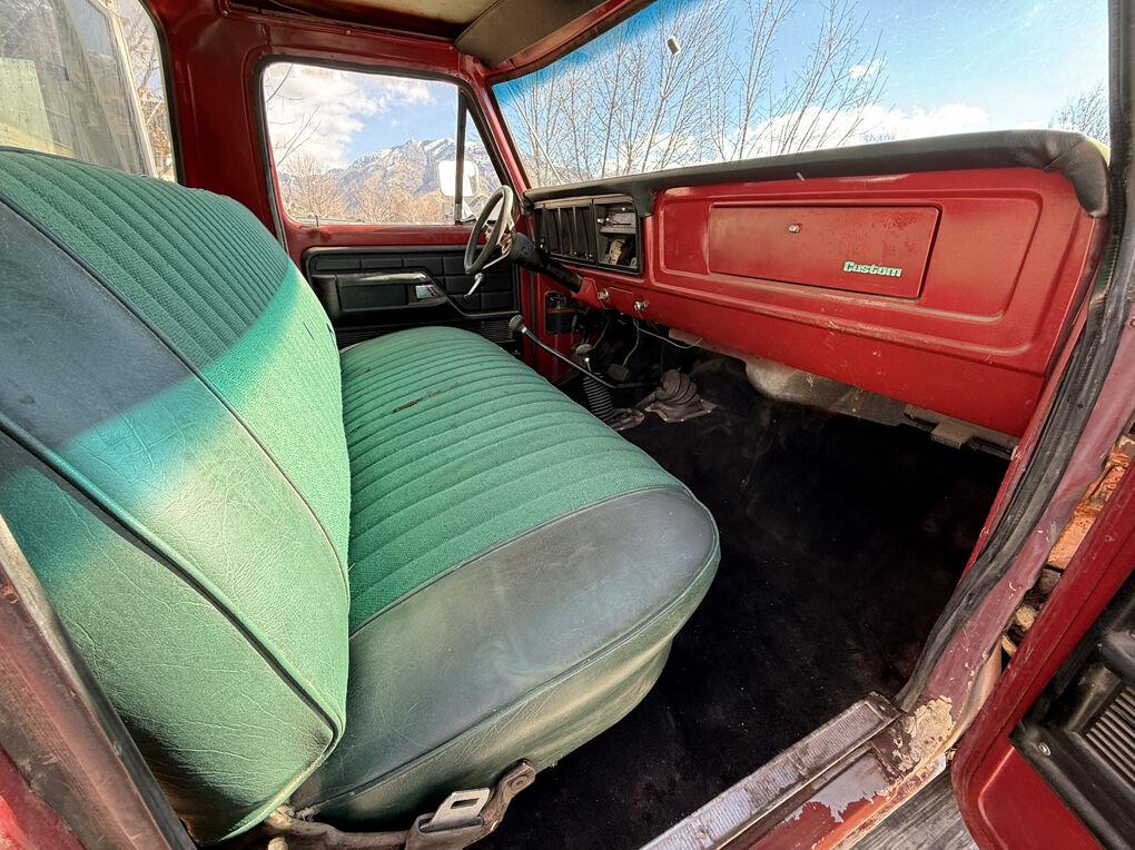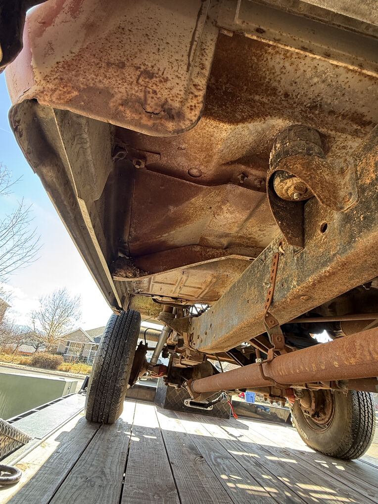 Extremely dry and original 1973 F250 4x4. Factory steel rims and hub caps, transmission and transfer case are there but the motor has been pulled. The only real rust is the drivers inside rocker. A 3 inch section of the drivers outer floor edge, over the rear wheel wells and a cab corner.