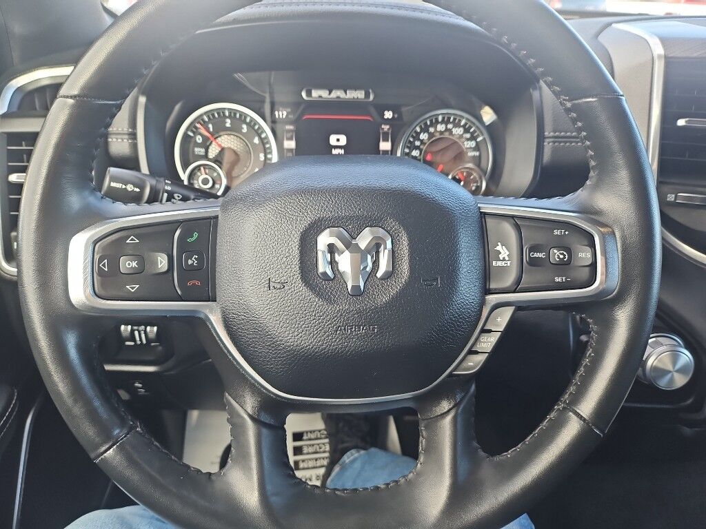 Protect it from unwanted accidents with a cutting edge backup camera system. The Ram 1500 offers Apple CarPlay for seamless connectivity. It offers Automatic Climate Control for personalized comfort. This 1/2 ton pickup features a hands-free Bluetooth phone system. The vehicle's Forward Collision Warning feature alerts drivers to potential front-end collisions. This vehicle is a certified CARFAX 1-owner. This vehicle comes equipped with Android Auto for seamless smartphone integration on the road. Start this vehicle from inside with remote start. This model has a clean CARFAX vehicle history report. The leather seats in this model are a must for buyers looking for comfort, durability, and style. You'll never again be lost in a crowded city or a country region with the navigation system on it. It is equipped with the latest generation of XM/Sirius Radio. This unit is a manufacturer certified pre-owned vehicle. The rear parking assist technology on this vehicle will put you at ease when reversing. The system alerts you as you get closer to an obstruction.