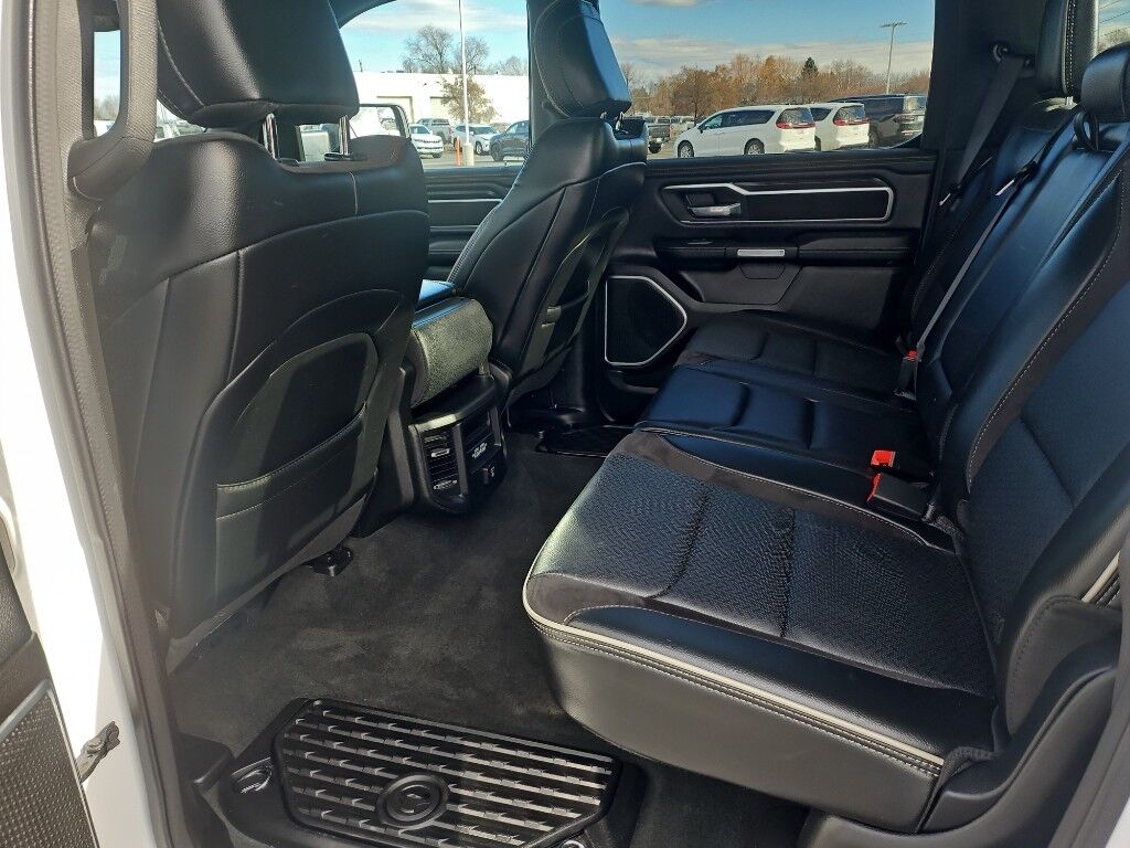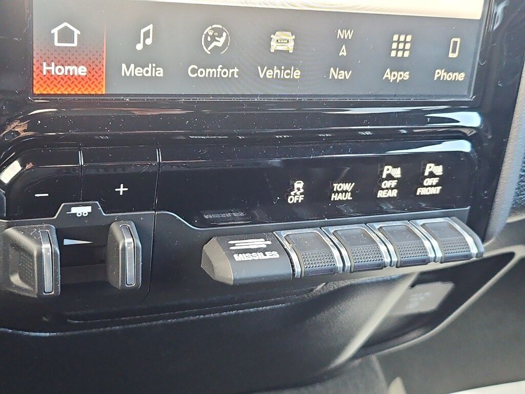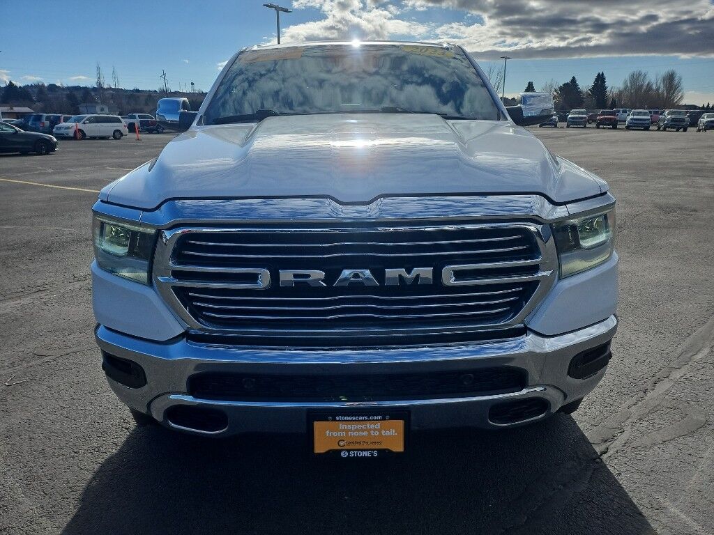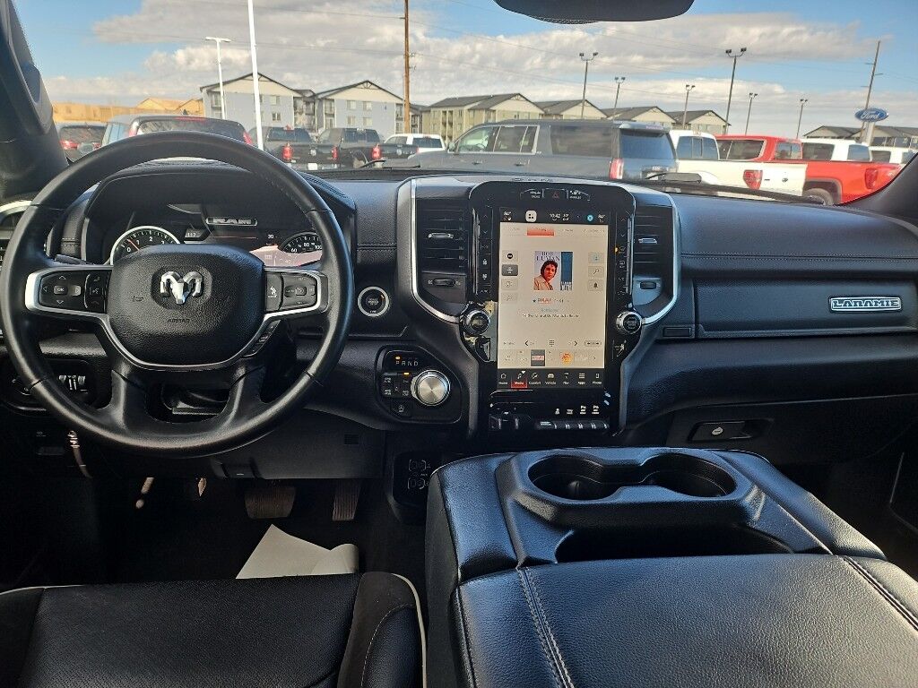 Laramie Level 1 Equipment Group: Google Android Auto; SiriusXM Radio Service; USB Host Flip; Rear Window Defroster; Blind Spot and Cross Path Detection; Rain Sensitive Windshield Wipers; Integrated Center Stack Radio; ParkSense Front/rear Park Assist with Stop; For Details, Visit DriveUconnect.com; For More Info, Call 800-643-2112; Rear Power Sliding Window; Integrated Voice Command with Bluetooth; Connectivity - US/Canada; 12" Touchscreen Display; GPS Navigation; 4G LTE Wi-Fi Hot Spot; GPS Antenna Input; SiriusXM with 360L; Global Telematics Box Module; Connected Travel and Traffic Services; Front LED Fog Lamps; LED Reflector Headlamps; Foam Bottle Insert (door Trim Panel); Apple CarPlay; Disassociated Touchscreen Display; HD Radio; Uconnect 5 Navigation with 12.0" Display Radio; Remote Tailgate Release; Auto High Beam Headlamp Control; Electric Shift on Demand Transfer Case; Front Door Accent Lighting; 2nd Row in Floor Storage Bins; Rear Door Accent Lighting,Quick Order Package 27H Laramie,20" X 9" Premium Paint/polished Wheels,ParkSense Front/rear Park Assist with Stop,Class IV Receiver Hitch,Trailer Brake Control,Forward Collision Warning-Plus,Ventilated driver and front passenger seats,Integrated navigation system with voice activation,Blind Spot Detection,Keyfob remote start,Heated steering wheel,Uconnect w/Bluetooth handsfree wireless device connectivity,Apple CarPlay/Android Auto smart device wireless mirroring,Heated driver and front passenger seats,Leather front seat upholstery,Driver seat with 8-way directional controls,Front passenger seat with 8-way directional controls,Keyfob trunk control,12 inch primary display,4G LTE Wi-Fi Hot Spot mobile hotspot internet access,ParkView rear mounted camera,Predictive brake assist system,Cruise control with steering wheel mounted controls,Primary monitor touchscreen,Driver seat power reclining, lumbar support, cushion tilt, fore/aft control and height adjustable control,Part and full-time 4WD,HEMI 5.7L V-8 variable valve control, regular unleaded, engine with cylinder deactivation and 395HP,HEMI 5.7L V-8,Smart key with hands-free access and push button start,Smart device remote start,Push-button,Active aerodynamics,Bluetooth wireless audio streaming,Dual-zone front climate control,Auto high-beam headlights,Sentry Key immobilizer,Active noise cancellation,Connected Travel & Traffic Services real-time traffic,Trailer brake controller,Trailer sway control,External memory control,Internet radio capability,9 USB ports,Electronic stability control system with anti-roll,Hill start assist,Automatic climate control,Rear Seat Reminder Alert rear seat check warning,ParkSense front and rear parking sensors,LED brake lights,Rain detecting wipers,LED front fog lights,Leather steering wheel,Easy lower tailgate,Active grille shutters,Connected Travel & Traffic Services real-time weather
