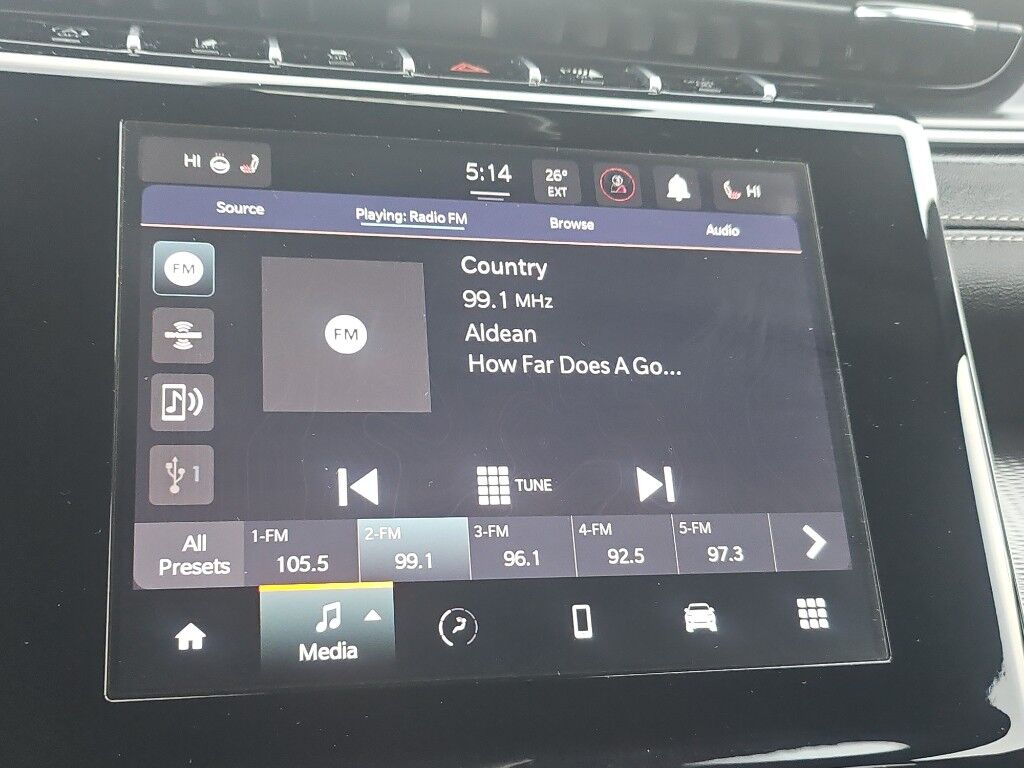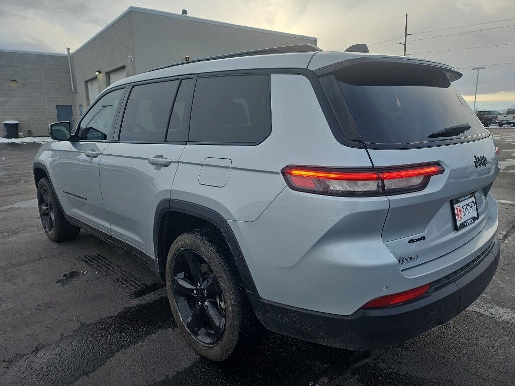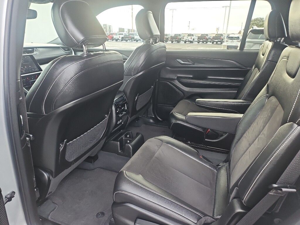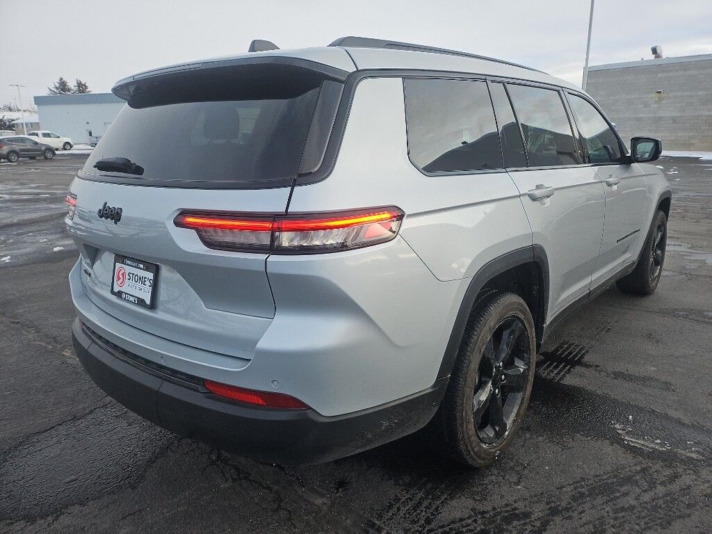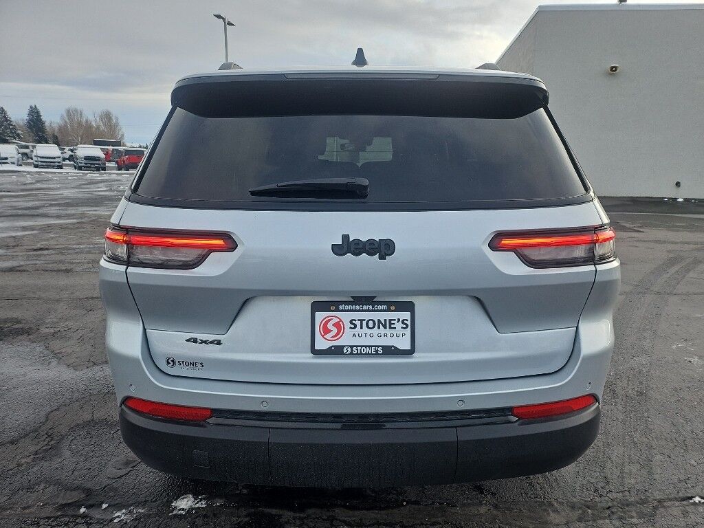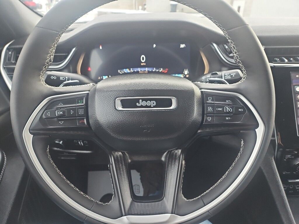 Quick Order Package 23B Altitude: Selectable Tire Fill Alert; Remote Start System; Rain Sensitive Windshield Wipers; Wireless Charging Pad; Heated Front Seats; Altitude Appearance Package; Black Headliner; Delete Laredo Badge; 3rd Row Charge-Only USB Ports; 115V Auxiliary Power Outlet; Gloss Black Exterior Accents; Capri Leatherette/suede Seats; Heated Steering Wheel; Molded in Color Black/gloss Black Roof Rails; Power Liftgate,Trailer Tow Group (b): Rear Load Leveling Suspension; Full Size Spare Tire; 180 Amp Alternator; Heavy Duty Engine Cooling; 18" Full-Size Steel Spare Wheel; Automatic Headlamp Leveling System; Trailer Hitch Zoom,20" X 8.5" Gloss Black Painted Aluminum Wheels,Power Sunroof,Silver Zynith,Power liftgate rear cargo door,Blind Spot Detection,Keyfob remote start,Heated steering wheel,Uconnect w/Bluetooth handsfree wireless device connectivity,Wireless Apple CarPlay/Android Auto smart device wireless mirroring,Heated driver and front passenger seats,12 USB ports,First-row sliding and tilting glass sunroof with express open/close activation sunshade,Simulated suede and leatherette front seat upholstery,Driver seat with 8-way directional controls,Front passenger seat with 4-way directional controls,Keyfob trunk control,8.4 inch primary display,Full Speed Forward Collision Warning Plus,Pedestrian/Cyclist Emergency Braking,4G LTE Wi-Fi Hot Spot mobile hotspot internet access,ParkView w/Trailer Hitch Zoom rear mounted camera,Active Lane Management,Cross Path Detection collision mitigation,Adaptive Cruise Control w/Stop & Go,Predictive brake assist system,Cruise control with steering wheel mounted controls,Primary monitor touchscreen,Fixed third-row seats,Driver seat power reclining, lumbar support, cushion tilt, fore/aft control and height adjustable control,Quadra-Trac I automatic full-time 4WD,Pentastar 3.6L V-6 DOHC, variable valve control, regular unleaded, engine with 293HP,Pentastar 3.6L V-6 DOHC,Front wireless smart device charging,Smart key with hands-free access and push button start,Smart device remote start,Push-button,Bluetooth wireless audio streaming,Gauge cluster display size: 10.25,Following distance alert,Dual-zone front climate control,Rear climate control system with separate controls,Voice-activated climate control,Full gauge cluster screen,Second-row bucket seats,Sentry Key immobilizer,Vehicle tracker,Vehicle integrated emergency SOS system,Trailer sway control,Uconnect external memory control,Internet radio capability,Digital/analog instrumentation display,Configurable instrumentation gauges,Electronic stability control system with anti-roll,V6; VVT; 3.6 Liter,Automatic; 8-Spd,4WD,Blind-Spot Alert,Hill Start Assist Control,Traction Control,Electronic Stability Control,ABS (4-Wheel),Alarm System,Push Button Start,Air Conditioning,Air Conditioning; Rear,Power Windows,Power Door Locks,Adaptive Cruise Control,Power Liftgate Release,Power Steering,Tilt & Telescoping Wheel,AM/FM Stereo,Bluetooth Wireless,Uconnect,Rear ParkSense Park Assist,Backup Camera,Dual Air Bags,Side Air Bags,F&R Head Curtain Air Bags,Knee Air Bags,Lane Management System,Heated Seats,Power Seat,Leather,Quad Seating (4 Buckets),Daytime Running Lights,LED Headlamps,Alloy Wheels