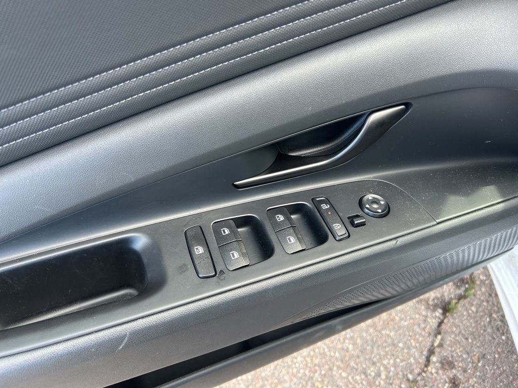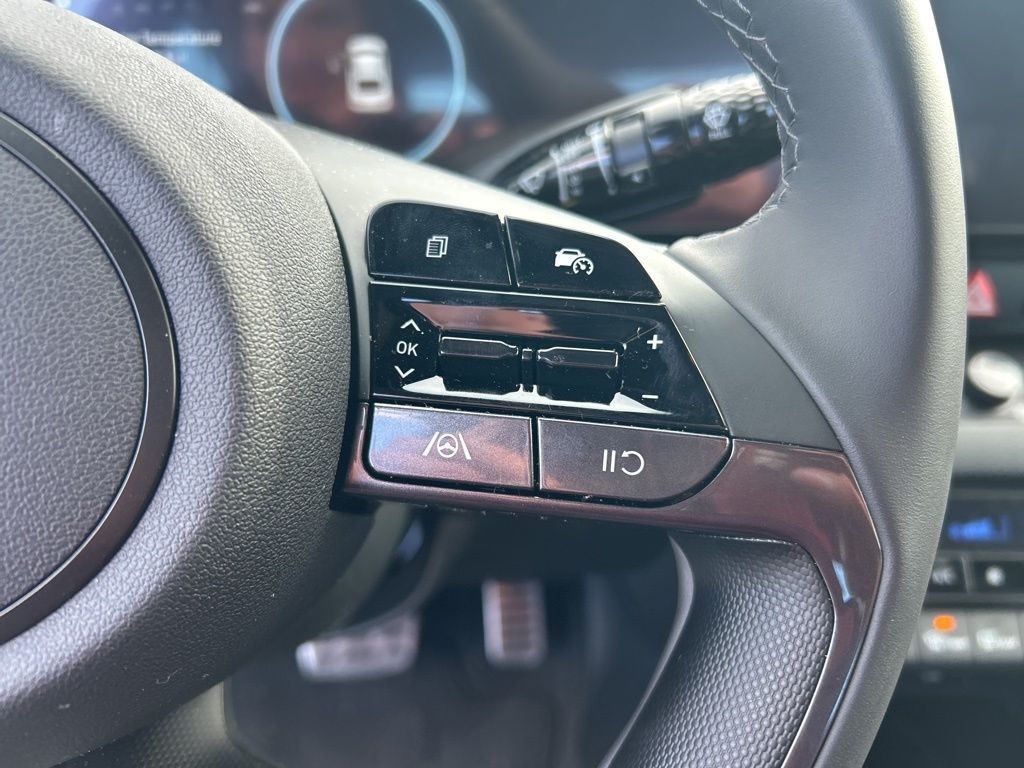 Option Group 01, 17'' x 7.0J Alloy Wheels, 4-Wheel Disc Brakes, 6 Speakers, ABS brakes, Air Conditioning, Alloy wheels, AM/FM radio: SiriusXM, Apple CarPlay & Android Auto, Auto High-beam Headlights, Automatic temperature control, Brake assist, Bumpers: body-color, Cargo Net, Carpeted Floor Mats, Delay-off headlights, Driver door bin, Driver vanity mirror, Dual front impact airbags, Dual front side impact airbags, Electronic Stability Control, Emergency communication system: Bluelink , Exterior Parking Camera Rear, First Aid Kit, Front anti-roll bar, Front Bucket Seats, Front Center Armrest, Front dual zone A/C, Front reading lights, Front wheel independent suspension, Fully automatic headlights, Heated door mirrors, Illuminated entry, Leather Shift Knob, Leather steering wheel, Low tire pressure warning, Mudguards, Navigation System, Occupant sensing airbag, Outside temperature display, Overhead airbag, Overhead console, Panic alarm, Passenger door bin, Passenger vanity mirror, Power door mirrors, Power steering, Power windows, Premium Cloth Seat Trim, Radio: AM/FM/HD/SiriusXM Display Audio, Rear side impact airbag, Rear window defroster, Remote keyless entry, Reversible Cargo Tray, Security system, Speed control, Speed-sensing steering, Spoiler, Steering wheel mounted audio controls, Tachometer, Telescoping steering wheel, Tilt steering wheel, Traction control, Trip computer, and Variably intermittent wipers.