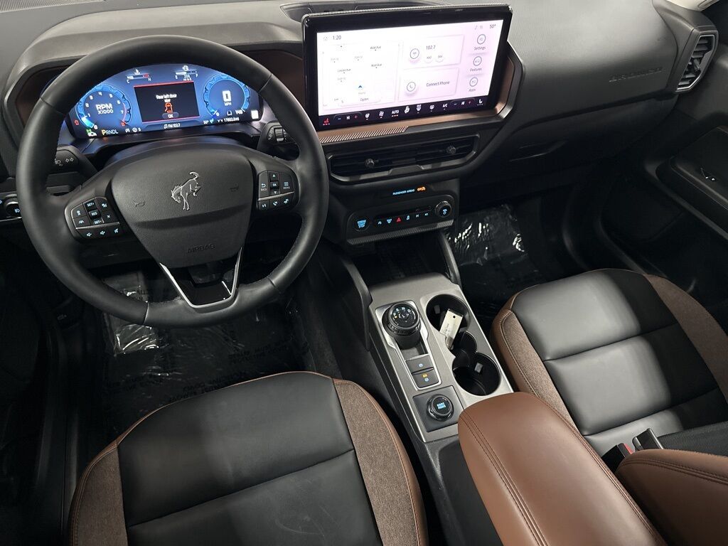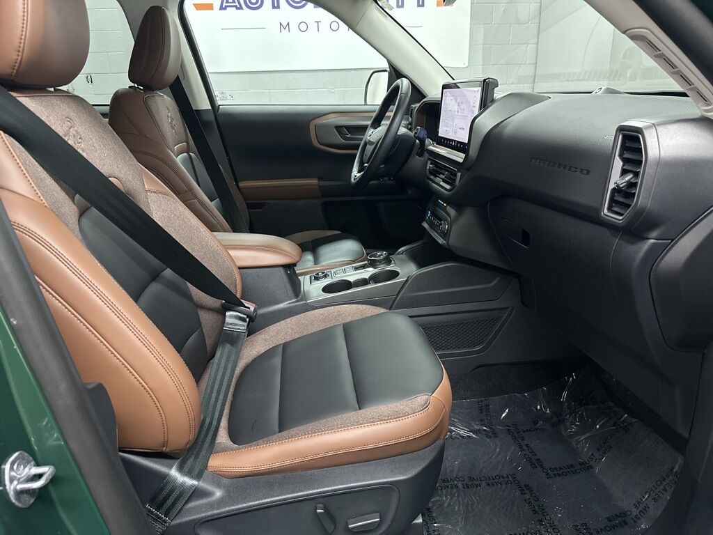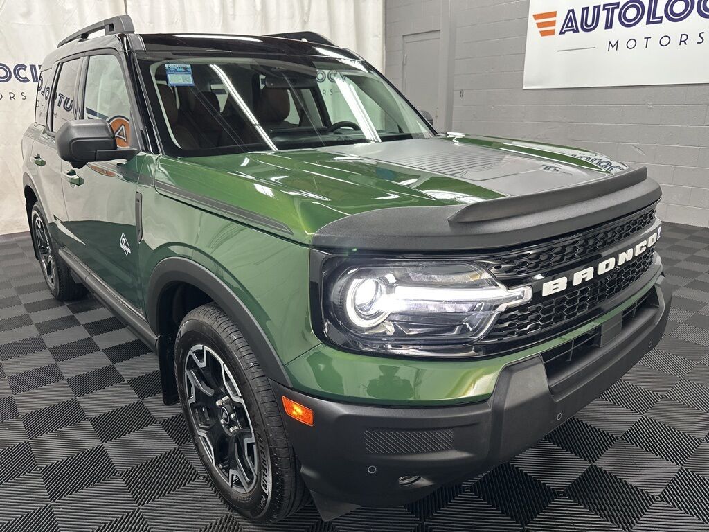 2025 Ford Bronco Sport Outer Banks with 17,802 miles! OUTER BANKS TECH PKG , TOPO GRAPHIC PKG, NAVIGATION, BACKUP CAMERA, HEATED FRONT LEATHER/CLOTH SEATS, HEATED STEERING WHEEL, DUAL CLIMATE, REAR AIR, MOONROOF, PARKING AID, BLINDSPOT MONITOR, LANE DEPARTURE/ASSIST, FORWARD COLLISION, REMOTE ENGINE START, WIRELESS PHONE CHARGER, ALLOY WHEELS, WIFI, B&O SOUND, BLUETOOTH, SIRIUS XM, APPLE CARPLAY, ANDROID AUTO, USB, USBC.