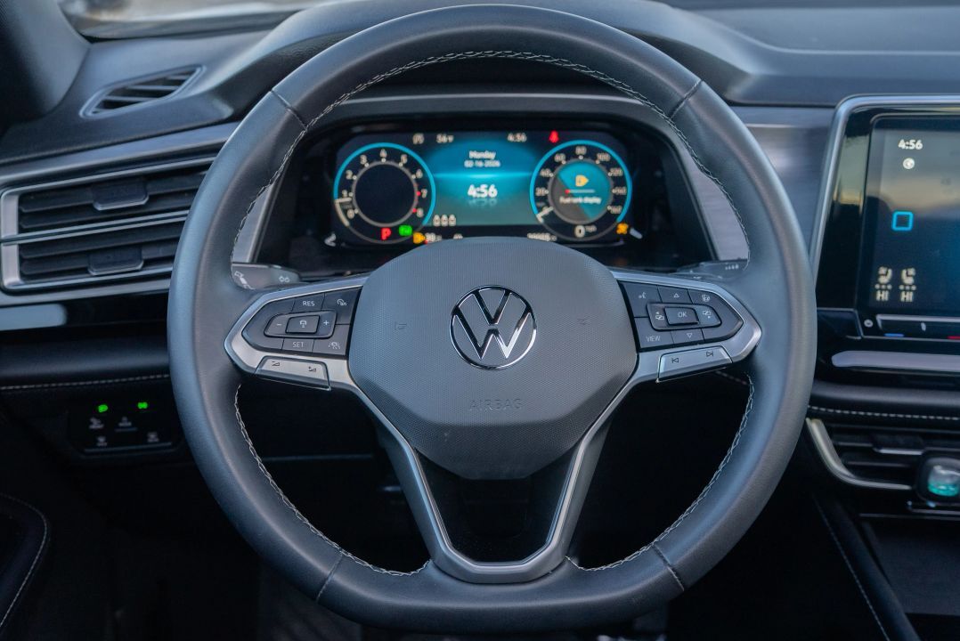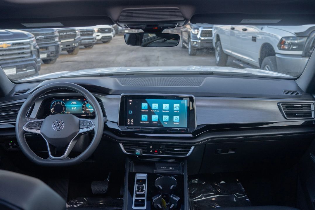 The cabin of the 2024 Volkswagen Atlas Cross Sport SE w/Technology is spacious, refined, and loaded with convenience features: