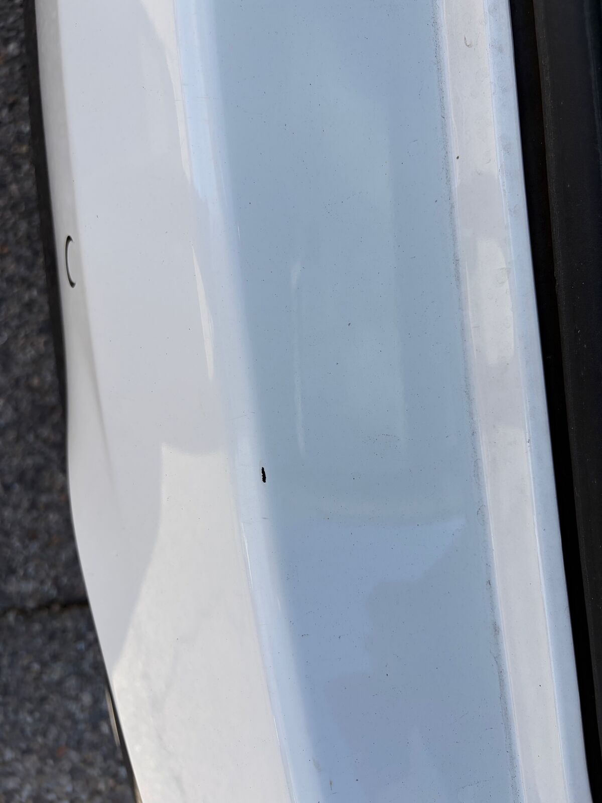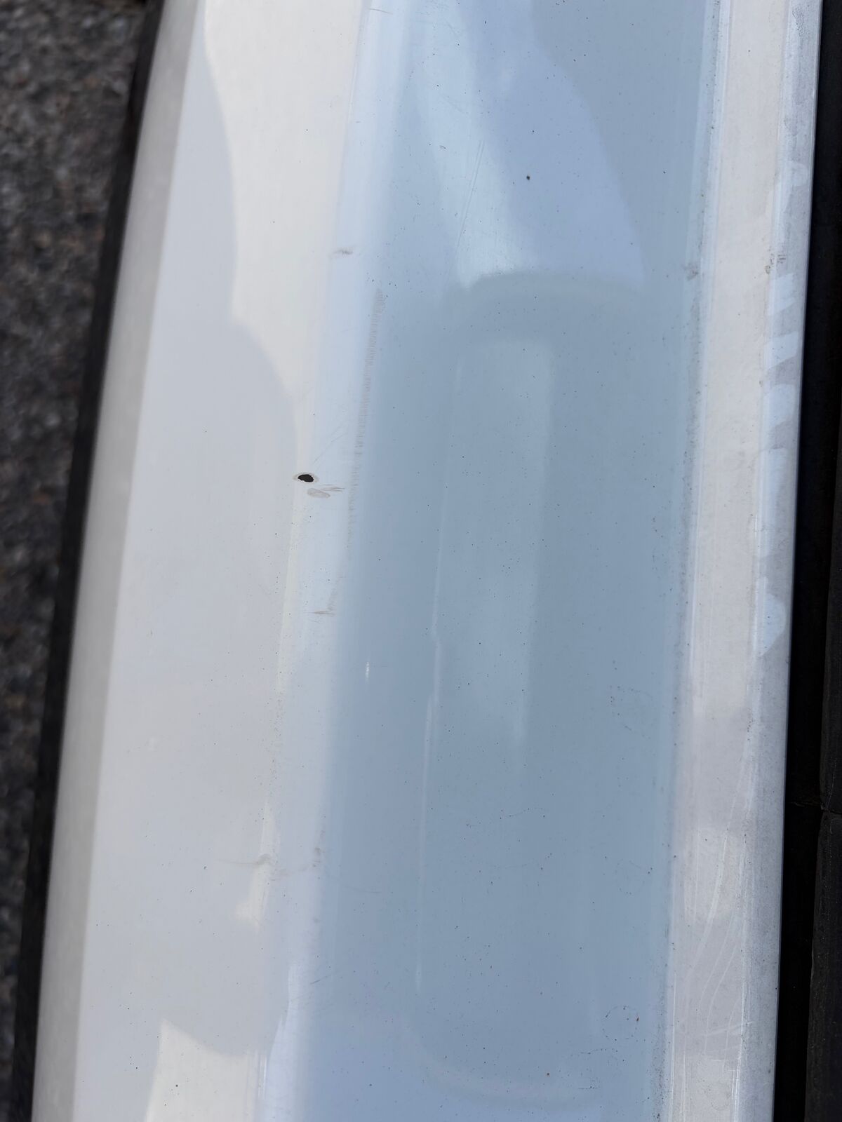 There are two close ups of the top of the rear bumper where there are some chips. It looks like someone dragged something over the bumper loading or unloading. They were there when we bought the car. We bought it from a seller in California.