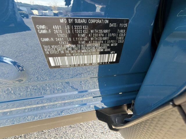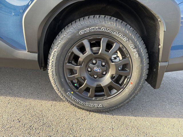 AUTO-DIMMING MIRROR W/COMPASS & HOMELINK -inc: Part number H501SAN000,SPLASH GUARDS -inc: Part number J101SSL300,GEYSER BLUE,GRAY TEXTURED STARTEX UPHOLSTERY -inc: silver and copper stitching and embossed Subaru Wilderness logo on head restraints,TRAILER HITCH - WILDERNESS -inc: Part number L101SSL001,HARMAN/KARDON SPEAKER SYSTEM & POWER REAR GATE -inc: Power Rear Gate automatic close and height memory hand pressure sensing automatic close and illuminated close and lock switch Radio: Subaru 11.6 Multimedia Navigation System valet mode integrated center information display AM/FM stereo HD Radio multitouch gesture high resolution display screen voice activated controls voice activated navigation Bluetooth audio streaming and hands-free phone connectivity w/SMS text messaging (refer to Subaru.com for cellphone compatibility) TomTom navigation software w/what3words iPod control capability smartphone integration: Android Auto and Apple CarPlay w/full screen view and wireless connection USB and Over The Air (OTA) audio system update USB and Map Over The Air (MOTA) TomTom navigation system update (3 years free map updates) steering wheel controls harman/Kardon speaker system w/11 speakers and 576 watt equivalent maximum output amplifier 3.5mm auxiliary input jack and ro,AUTO-DIMMING EXTERIOR MIRROR W/APPROACH LIGHT -inc: Part number J201SFN001,All Wheel Drive,Power Steering,ABS,4-Wheel Disc Brakes,Brake Assist,Brake Actuated Limited Slip Differential,Aluminum Wheels,Tires - Front All-Terrain,Tires - Rear All-Terrain,Conventional Spare Tire,Sun/Moonroof,Generic Sun/Moonroof,Panoramic Roof,Heated Mirrors,Power Mirror(s),Integrated Turn Signal Mirrors,Rear Defrost,Privacy Glass,Intermittent Wipers,Variable Speed Intermittent Wipers,Rain Sensing Wipers,Rear Spoiler,Power Door Locks,Daytime Running Lights,Automatic Headlights,Headlights-Auto-Leveling,LED Headlights,Automatic Highbeams,Fog Lamps,AM/FM Stereo,Satellite Radio,MP3 Capability,Steering Wheel Audio Controls,Bluetooth Connection,Auxiliary Audio Input,HD Radio,Smart Device Integration,Requires Subscription,MP3 Capability,Bluetooth Connection,Power Driver Seat,Bucket Seats,Heated Front Seat(s),Driver Adjustable Lumbar,Pass-Through Rear Seat,Rear Bench Seat,Adjustable Steering Wheel,Trip Computer,Power Windows,WiFi Hotspot,Keyless Entry,Power Door Locks,Keyless Entry,Power Door Locks,Keyless Start,Cruise Control,Adaptive Cruise Control,Climate Control,Multi-Zone A/C,A/C,Premium Synthetic Seats,Driver Vanity Mirror,Passenger Vanity Mirror,Driver Illuminated Vanity Mirror,Passenger Illuminated Visor Mirror,Floor Mats,Cargo Shade,Keyless Start,Smart Device Integration,Power Door Locks,Power Windows,Trip Computer,Security System,Immobilizer,Cruise Control Steering Assist,Traction Control,Stability Control,Traction Control,Front Side Air Bag,Front Collision Mitigation,Driver Monitoring,Telematics,Requires Subscription,Blind Spot Monitor,Lane Departure Warning,Lane Keeping Assist,Lane Departure Warning,Evasion Assist,Cross-Traffic Alert,Rear Collision Mitigation,Tire Pressure Monitor,Driver Air Bag,Passenger Air Bag,Front Head Air Bag,Rear Head Air Bag,Passenger Air Bag Sensor,Knee Air Bag,Child Safety Locks,Back-Up Camera