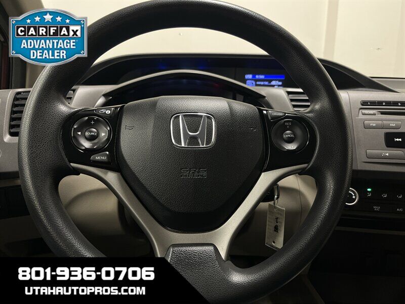 ONE OWNER CIVIC!!! This one owner Honda Civic comes to us from sunny California and is in nice shape both inside and out. It is a dark maroon with a tan interior and is equipped with remote entry, eco drive mode for great fuel mileage, cruise control, on wheel audio controls, automatic transmission, power windows and door locks, clean title, runs and drives great. We tend to sell our vehicles quickly so please call and verify availability before heading in. You can check out the rest of our great inventory online at www.utahautopros.com