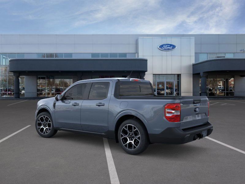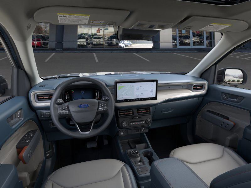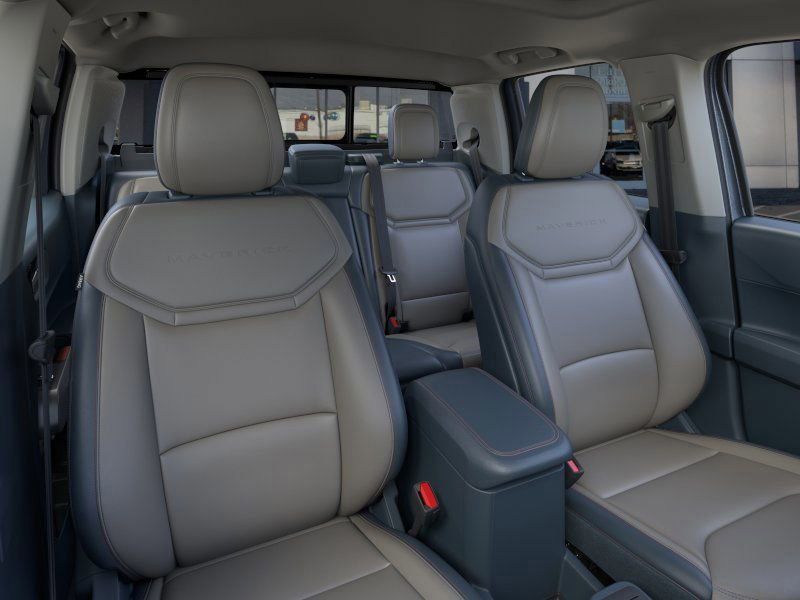 This 2026 Azure Gray Metallic Tri-Coat Ford Maverick Lariat AWD is well equipped and includes these features and benefits: Ford Connectivity Package (1-Year Included), Internet access capable: 5G Modem - Ford Connectivity Package, 2.5L I-4 Hybrid, 2.91 Axle Ratio, 4-Wheel Disc Brakes, 8 Speakers, ABS brakes, ActiveX Trimmed Heated Front Bucket Seats, Air Conditioning, Alloy wheels, AM/FM radio: SiriusXM with 360L, Apple CarPlay/Android Auto, Auto High-beam Headlights, Automatic temperature control, Brake assist, Bumpers: body-color, Compass, Delay-off headlights, Driver door bin, Driver vanity mirror, Dual front impact airbags, Dual front side impact airbags, Electronic Stability Control, Emergency communication system: SYNC 4 911 Assist, Exterior Parking Camera Rear, Four wheel independent suspension, Front anti-roll bar, Front Bucket Seats, Front Center Armrest, Front dual zone A/C, Front reading lights, Fully automatic headlights, Heated door mirrors, Heated front seats, Heated steering wheel, Illuminated entry, Knee airbag, Low tire pressure warning, Navigation system: Connected Navigation, Occupant sensing airbag, Outside temperature display, Overhead airbag, Overhead console, Panic alarm, Passenger door bin, Passenger vanity mirror, Power door mirrors, Power driver seat, Power steering, Power windows, Radio data system, Radio: B&O Sound System by Bang and Olufsen, Rear anti-roll bar, Rear seat center armrest, Rear step bumper, Remote keyless entry, Security system, SiriusXM with 360L, Speed control, Speed-sensing steering, Steering wheel mounted audio controls, SYNC 4 with Enhanced Voice Recognition, Telescoping steering wheel, Tilt steering wheel, Traction control, Trip computer, and Wheels: 19'' Machined Aluminum Painted.
