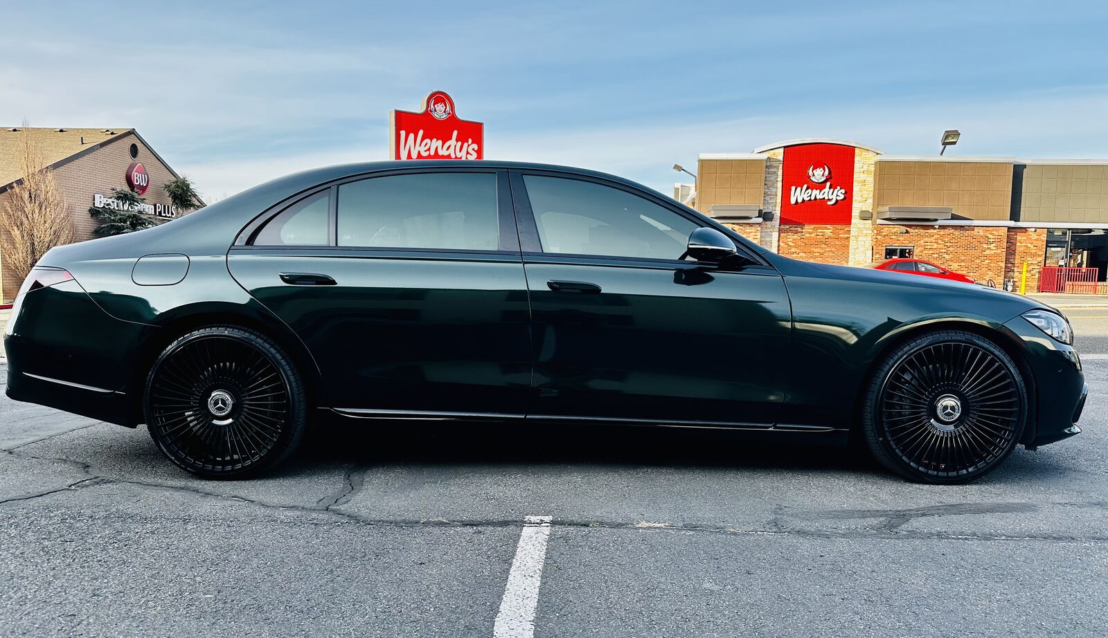 Finished in a stunning British Racing Green-style wrap, this car turns heads everywhere. The wrap is professionally done and carries a warranty, giving you peace of mind. The original factory paint underneath is in excellent condition, and we have detailed photos available upon request to show just how clean it is.
