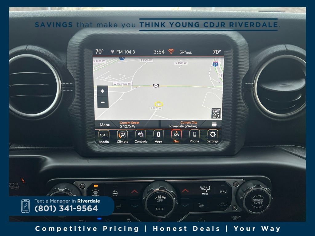 Step inside and you'll be greeted by a wealth of premium features, including a state-of-the-art Uconnect 4C Nav system with an 8.4'' display, Apple CarPlay and Android Auto integration, and a premium audio system with 9 speakers. The Sahara's leather-wrapped steering wheel and shift knob, along with the heated front seats and steering wheel, provide a luxurious and comfortable driving experience, even in the coldest weather.