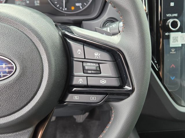 Exterior@Active grille shutters~Exterior@Bumper detail (front underguard)~Exterior@Bumper detail (rear underguard)~Exterior@Daytime running lights~Exterior@Door handle color (body-color)~Exterior@Exhaust tip color (stainless steel)~Exterior@Exterior entry lights (approach lamps)~Exterior@Fender lip moldings (black)~Exterior@Front bumper color (body-color)~Exterior@Front fog lights (LED)~Exterior@Front wipers (variable intermittent)~Exterior@Grille color (black)~Exterior@Headlight bezel color (black)~Exterior@Headlights (LED)~Exterior@Headlights (auto delay off)~Exterior@Headlights (auto high beam dimmer)~Exterior@Headlights (auto on/off)~Exterior@Headlights (cornering)~Exterior@Headlights (self-leveling)~Exterior@Headlights (wiper activated)~Exterior@Heated windshield wiper rests~Exterior@Laminated glass (acoustic windshield)~Exterior@Liftgate window (fixed)~Exterior@Mirror color (black)~Exterior@Moonroof / Sunroof (anti-trapping)~Exterior@Moonroof / Sunroof (one-touch open/close)~Exterior@Moonroof / Sunroof (power panoramic)~Exterior@Moonroof / Sunroof (sliding sunshade)~Exterior@Power windows (safety reverse)~Exterior@Rear bumper color (black)~Exterior@Rear privacy glass~Exterior@Rear spoiler (roofline)~Exterior@Rear spoiler color (body-color)~Exterior@Rear trunk/liftgate (liftgate)~Exterior@Rear wiper (auto-on in reverse)~Exterior@Rear wiper (intermittent)~Exterior@Rear wiper (with washer)~Exterior@Rocker panel color (black)~Exterior@Roof rails (black)~Exterior@Side mirror adjustments (manual folding)~Exterior@Side mirror adjustments (power)~Exterior@Side mirrors (heated)~Exterior@Side mirrors (integrated turn signals)~Exterior@Taillights (LED)~Exterior@Tinted glass~Exterior@Window defogger (rear)~Exterior@Window trim (black)~Interior@Adaptive cruise control~Interior@Adaptive stop and go cruise control (semi-automatic)~Interior@Air filtration~Interior@Airbag deactivation (occupant sensing passenger)~Interior@Antenna type (diversity)~Interior@Antenna type (mast)~Interior@Armrests (rear center with cupholders)~Interior@Armrests (rear folding)~Interior@Assist handle (front)~Interior@Assist handle (rear)~Interior@Autonomous lane guidance (lane centering)~Interior@Auxiliary audio input (Bluetooth)~Interior@Auxiliary audio input (USB)~Interior@Auxiliary audio input (iPod/iPhone)~Interior@Auxiliary audio input (jack)~Interior@Cargo area light~Interior@Cargo cover (retractable)~Interior@Center console (front console with armrest and storage)~Interior@Center console (illuminated)~Interior@Center console (organizer tray)~Interior@Center console trim (leatherette)~Interior@Connected in-car apps (Google POIs)~Interior@Connected in-car apps (Google search)~Interior@Connected in-car apps (SiriusXM Travel Link)~Interior@Connected in-car apps (Yelp)~Interior@Courtesy lights (door)~Interior@Cupholders (front)~Interior@Cupholders (rear)~Interior@Dash trim (leatherette)~Interior@Door trim (leatherette)~Interior@Driver assistance app (roadside assistance)~Interior@Driver seat (heated)~Interior@Driver seat power adjustments (10)~Interior@Driver seat power adjustments (height)~Interior@Driver seat power adjustments (lumbar)~Interior@Driver seat power adjustments (reclining)~Interior@Electronic messaging assistance (voice operated)~Interior@Electronic messaging assistance (with read function)~Interior@Floor mat material (carpet)~Interior@Floor material (carpet)~Interior@Floor mats (front)~Interior@Floor mats (rear)~Interior@Front air conditioning (automatic climate control)~Interior@Front air conditioning zones (dual)~Interior@Front airbags (dual)~Interior@Front headrests (2)~Interior@Front headrests (adjustable)~Interior@Front seat type (bucket)~Interior@Hands-free phone call integration (voice operated)~Interior@Infotainment (Subaru Infotainment System)~Interior@Infotainment screen size (11.6 in.)~Interior@Interior accents (chrome)~Interior@Internet radio app (AHA)~Interior@Internet radio app (Pandora)~Interior@Internet radio app (Stitcher)~Interior@Knee airbags (driver)~Interior@Multi-function remote (panic alarm)~Interior@Multi-function remote (proximity entry system)~Interior@Multi-function remote (trunk release)~Interior@One-touch windows (2)~Interior@Overhead console (front)~Interior@Passenger seat (heated)~Interior@Passenger seat manual adjustments (4)~Interior@Passenger seat manual adjustments (reclining)~Interior@Power outlet(s) (12V cargo area)~Interior@Power outlet(s) (12V front)~Interior@Power outlet(s) (USB front)~Interior@Power outlet(s) (USB rear)~Interior@Power outlet(s) (USB-C front)~Interior@Power outlet(s) (USB-C rear)~Interior@Power steering (variable/speed-proportional)~Interior@Power windows (lockout button)~Interior@Push-button start~Interior@Radio (AM/FM)~Interior@Radio (HD radio)~Interior@Radio (touch screen display)~Interior@Radio (voice operated)~Interior@Radio data system~Interior@Reading lights (front)~Interior@Reading lights (rear)~Interior@Rear headrests (3)~Interior@Rear headrests (adjustable)~Interior@Rear seat folding (flat)~Interior@Rear seat folding (split)~Interior@Rear seat manual adjustments (reclining)~Interior@Rear seat type (60-40 split bench)~Interior@Rear vents (second row)~Interior@Rearview mirror (manual day/night)~Interior@Satellite radio (SiriusXM)~Interior@Shift knob trim (urethane)~Interior@Side airbags (front)~Interior@Side curtain airbags (front)~Interior@Side curtain airbags (rear)~Interior@Smart device app compatibility (MySubaru)~Interior@Smart device app function (engine start)~Interior@Smart device app function (horn/light operation)~Interior@Smart device app function (lock operation)~Interior@Smart device app function (maintenance scheduling)~Interior@Smart device app function (maintenance status)~Interior@Smart device app function (security event/collision alert)~Interior@Smart device app function (vehicle location)~Interior@Smartphone integration (wireless Android Auto)~Interior@Smartphone integration (wireless Apple CarPlay)~Interior@Speed sensit