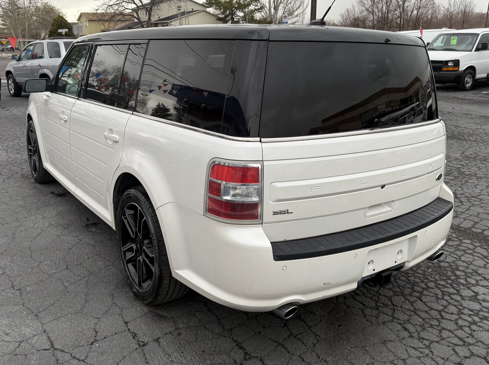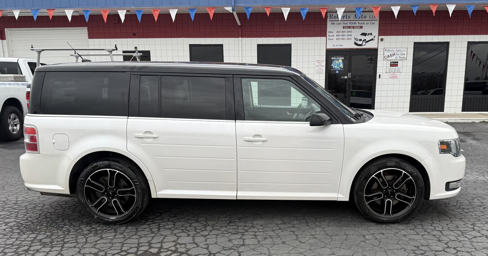 2014 FORD FLEX SEL FWD. 3.5 V6 WITH SMOOTH SHIFTING AUTOMATIC. CLEAN TITLE. ONLY 149 K MILES. PASSED IM INSPECTION. SERIVICED WITH NEW OIL AND FILTER. LOADED WITH MANY OPTIONS INCLUDING LEATHER INTERIOR. POWER WINDOWS/LOCKS/MIRRORS/SEATS. POWER SUNROOF. PS,PB,TILT,CRUISE, COLD AC, AM/FM/CD STEREO. ALUMINUM WHEELS WITH NICE TIRES. GREAT FAMILY CAR. PRICED TO SELL AT $5195.00. CALL SCOTT AT 801-891-3913 OR MIKE AT 801-891-3913
