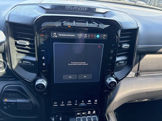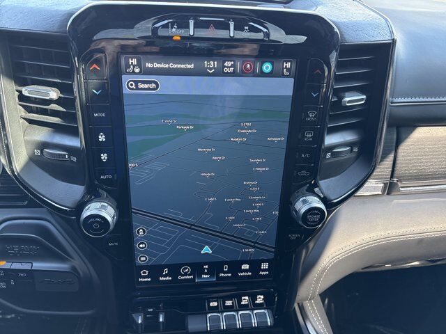 GPS Navigation,Navigation System,5th Wheel/Gooseneck Towing Prep Group,Body Color Bumper Group,Limited Level 1 Equipment Group,Protection Group,Quick Order Package 2HM Limited,10 Speakers,17 Speaker harman kardon Premium Sound,Active Noise Control System,AM/FM radio: SiriusXM with 360L,Audio memory,GPS Antenna Input,HD Radio,Radio data system,Radio: Uconnect 5 Nav w/12.0 Display,SiriusXM w/360L,Air Conditioning,Automatic temperature control,Front dual zone A/C,Rear window defroster,Exterior Mirrors w/Memory,Memory seat,Pedal memory,Power driver seat,Power steering,Power windows,Remote keyless entry,Steering wheel mounted audio controls,Tip Start,Traction control,4-Wheel Disc Brakes,ABS brakes,Adaptive Steering System,Dual front impact airbags,Dual front side impact airbags,Front anti-roll bar,Low tire pressure warning,Occupant sensing airbag,Overhead airbag,Painted Front Bumper,Painted Rear Bumper,Rear anti-roll bar,Power Sunroof,Pickup Box,Brake assist,Electronic Stability Control,ParkView Rear Back-Up Camera,Auto High-beam Headlights,Delay-off headlights,Front fog lights,Fully automatic headlights,Panic alarm,Security system,Adaptive Cruise Control w/Stop,Speed control,Anti-Spin Differential Rear Axle,220 Amp Alternator,Electronically Controlled Throttle,Bodyside moldings,Bumpers: chrome,CTR Stop Lamp w/Cargo View Camera,Exterior Mirrors Courtesy Lamps,Exterior Mirrors w/Heating Element,Exterior Mirrors w/Supplemental Signals,Heated door mirrors,Manufacturer's Statement of Origin,Mirror Running Lights,Mirror-Mounted Aux Reverse Lamps,Power Adjustable Convex Aux Mirrors,Power door mirrors,Power Folding Mirrors,Rear step bumper,Trailer Tow Mirrors,Turn signal indicator mirrors,Vendor Painted Cargo Box,Vendor Painted Cargo Box Tracking,12 Touchscreen Display,4G LTE Wi-Fi Hot Spot,Adjustable pedals,Apple CarPlay,Apple CarPlay/Android Auto,Auto-dimming Rear-View mirror,Compass,Connected Travel & Traffic Services,Connectivity - US/Canada,Digital Rearview Mirror,Disassociated Touchscreen Display,Driver door bin,Driver vanity mirror,Front reading lights,Full Speed Forward Collision Warning Plus,Garage door transmitter,Genuine wood console insert,Genuine wood dashboard insert,Genuine wood door panel insert,Global Telematics Box Module (TBM),Google Android Auto,Heated steering wheel,Illuminated entry,Integrated Voice Command w/Bluetooth,Lane Keep Assist,Leather steering wheel,Limited Leather Bucket Seats,Off-Road Information Pages,Outside temperature display,Overhead console,Passenger vanity mirror,Rear reading lights,Rear seat center armrest,Selectable Tire Fill Alert,Surround View Camera System,Tachometer,Tilt steering wheel,Tow-Mode Camera (Wired),Trailer Surround View Camera System (DISC),Trip computer,Voltmeter,Front Bucket Seats,Heated front seats,Heated rear seats,Power passenger seat,Split folding rear seat,Ventilated front seats,Front Center Armrest w/Storage,Passenger door bin,RamBox Delete,Trailer Reverse Guidance,Alloy wheels,Wheels: 20 x 8.0 Satin Carbon w/Chrome Inserts,Rain sensing wipers,Variably intermittent wipers,3.73 Axle Ratio,QUICK ORDER PACKAGE 2HM LIMITED -inc: Engine: 6.7L I6 Cummins Turbo Diesel Transmission: 6-Speed Automatic (68RFE),BRIGHT WHITE CLEARCOAT,BLACK LIMITED LEATHER BUCKET SEATS,ADAPTIVE STEERING SYSTEM,POWER SUNROOF,5TH WHEEL/GOOSENECK TOWING PREP GROUP -inc: Pickup Box,ENGINE: 6.7L I6 CUMMINS TURBO DIESEL -inc: Selective Catalytic Reduction (Urea) Dual 730 Amp Maintenance Free Batteries Cummins Turbo Diesel Badge Heavy Duty Engine Cooling Supplemental Heater 220 Amp Alternator Diesel Exhaust Brake Front Bumper Sight Shields Capless Fuel Fill w/o Discriminator Distribution Services Tracking,LIMITED LEVEL 1 EQUIPMENT GROUP -inc: 17 Speaker harman kardon Premium Sound CTR Stop Lamp w/Cargo View Camera Surround View Camera System Adaptive Cruise Control w/Stop Trailer Reverse Guidance Digital Rearview Mirror Adaptive Steering System Full Speed Forward Collision Warning Plus Lane Keep Assist,3.73 AXLE RATIO (STD),MANUFACTURER'S STATEMENT OF ORIGIN,TRAILER SURROUND VIEW CAMERA SYSTEM,TRANSMISSION: 6-SPEED AUTOMATIC (68RFE) -inc: Leather Wrapped Shift Control,WHEELS: 20 X 8.0 SATIN CARBON W/CHROME INSERTS (STD),RAMBOX DELETE -inc: Pickup Box,220 AMP ALTERNATOR,CTR STOP LAMP W/CARGO VIEW CAMERA,BODY COLOR BUMPER GROUP -inc: Painted Front Bumper Painted Rear Bumper,TOW-MODE CAMERA (WIRED),PROTECTION GROUP,ANTI-SPIN DIFFERENTIAL REAR AXLE,Four Wheel Drive,Tow Hitch,Power Steering,ABS,4-Wheel Disc Brakes,Brake Assist,Aluminum Wheels,Tires - Front All-Terrain,Tires - Rear All-Terrain,Bed Liner,Conventional Spare Tire,Tow Hooks,Power Mirror(s),Power Folding Mirrors,Integrated Turn Signal Mirrors,Heated Mirrors,Rear Defrost,Privacy Glass,Intermittent Wipers,Variable Speed Intermittent Wipers,Rain Sensing Wipers,Running Boards/Side Steps,Power Retractable Running Boards,Power Door Locks,Fog Lamps,Daytime Running Lights,Automatic Headlights,LED Headlights,Automatic Highbeams,AM/FM Stereo,Navigation System,Satellite Radio,Bluetooth Connection,HD Radio,Requires Subscription,Premium Sound System,MP3 Capability,Steering Wheel Audio Controls,Auxiliary Audio Input,Premium Sound System,Satellite Radio,HD Radio,Requires Subscription,Satellite Radio,HD Radio,Requires Subscription,Power Driver Seat,Power Passenger Seat,Driver Adjustable Lumbar,Seat Memory,Heated Front Seat(s),Cooled Front Seat(s),Power Driver Seat,Driver Adjustable Lumbar,Power Passenger Seat,Passenger Adjustable Lumbar,Pass-Through Rear Seat,Heated Rear Seat(s),Rear Bench Seat,Adjustable Steering Wheel,Trip Computer,Power Windows,Leather Steering Wheel,Heated Steering Wheel,Keyless Entry,Power Door Locks,Keyless Entry,Power Door Locks,Keyless Start,Universal Garage Door Opener,Cruise Control,Climate Control,Multi-Zone A/C,A/C,Woodgrain Interior Trim,Leather Seats,Bucket Seats,Auto-Dimming Rearview Mirror,Driver Vanity Mirror,Passenger Vanity Mirror,Driver Illuminated Vanity Mirror,Passenger Illuminated Visor Mirr