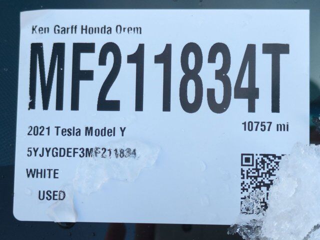 Ken Garff Honda is excited to offer this handsome 2021 Tesla Model Y Performance in Pearl White Multi-Coat.CLEAN CARFAX ONE OWNER, Garff Certified Pre-Owned Certified, 15 Speakers, 4-Wheel Disc Brakes, 5 Seat Interior, 9.0 Axle Ratio, ABS brakes, Air Conditioning, Alloy wheels, Auto High-beam Headlights, Auto tilt-away steering wheel, Auto-dimming door mirrors, Auto-dimming Rear-View mirror, Automatic temperature control, Brake assist, Bumpers: body-color, Compass, Delay-off headlights, Driver door bin, Driver vanity mirror, Dual front impact airbags, Dual front side impact airbags, Electronic Stability Control, Exterior Parking Camera Rear, Four wheel independent suspension, Front anti-roll bar, Front Bucket Seats, Front Center Armrest, Front dual zone A/C, Front fog lights, Front reading lights, Fully automatic headlights, Genuine wood dashboard insert, Heated door mirrors, Heated front seats, Heated rear seats, Heated steering wheel, Illuminated entry, Knee airbag, Lane Departure Warning System, Low tire pressure warning, Memory seat, Navigation System, Occupant sensing airbag, Outside temperature display, Overhead airbag, Passenger door bin, Passenger vanity mirror, Power door mirrors, Power driver seat, Power Liftgate, Power passenger seat, Power steering, Power windows, Premium Audio System, Premium Seat Trim, Radio data system, Rain sensing wipers, Rear reading lights, Rear seat center armrest, Rear window defroster, Remote keyless entry, Security system, Speed control, Speed-sensing steering, Split folding rear seat, Spoiler, Steering wheel memory, Steering wheel mounted A/C controls, Steering wheel mounted audio controls, Telescoping steering wheel, Tilt steering wheel, Traction control, Trip computer, Variably intermittent wipers, Wheels: 21 x 9.5 Fr & 21 x 10.5 Rr Uberturbine.Certification Program Details: 118 point vehicle inspection 3 month / 3,000 miles comprehensive limited warranty with a $0 deductible Complementary vehicle history report GarffCARE roadside assistance Powertrain extending additives: Engine deposit cleaning additive Transmission conditioning additive Fuel system cleaner Cooling-system treatment Artic Blast A/C treatment Power steering fluid conditioner Second key and remote Free home delivery available No hassle return/exchange for 5-days or 500 milesOdometer is 64306 miles below market average!115/106 City/Highway MPGIn addition to transparent, no hassle pricing and upfront no hassle trade evaluation.....We provide an enjoyably brief and easy Sales Experience...Your Pace...Your Deal...No Exceptions!