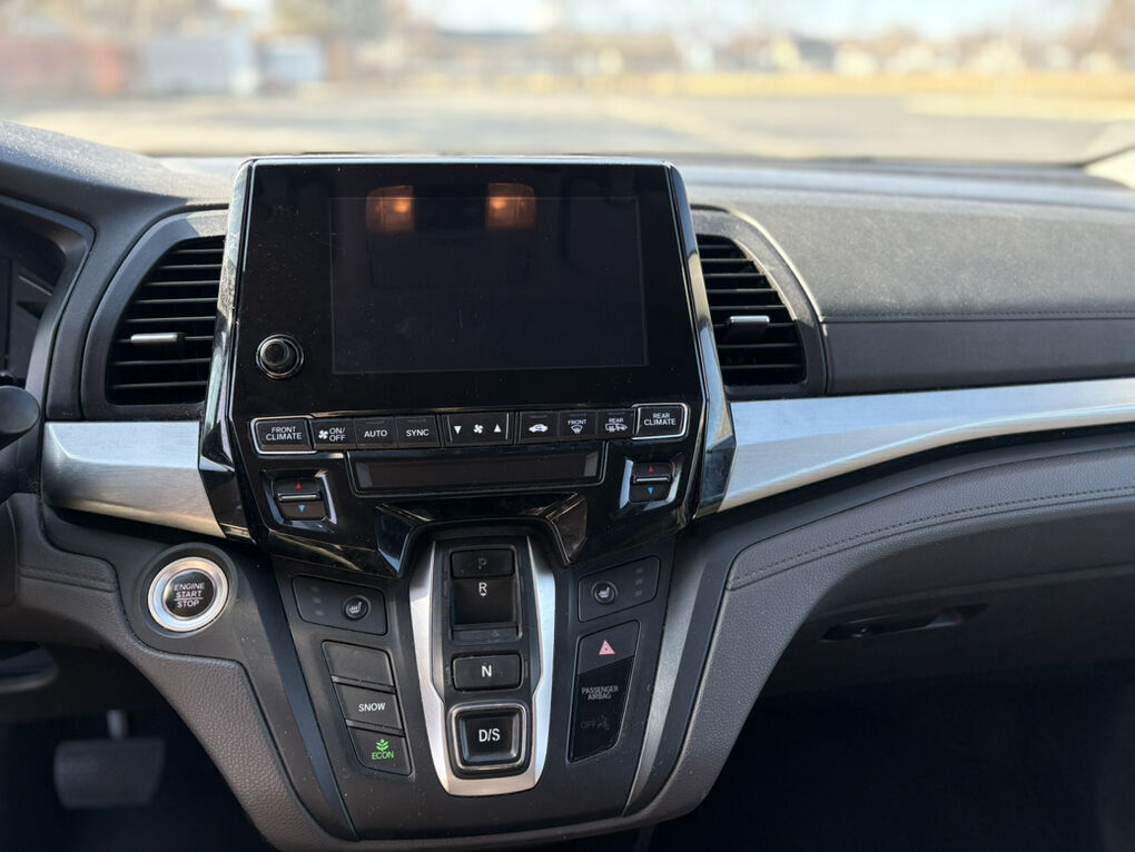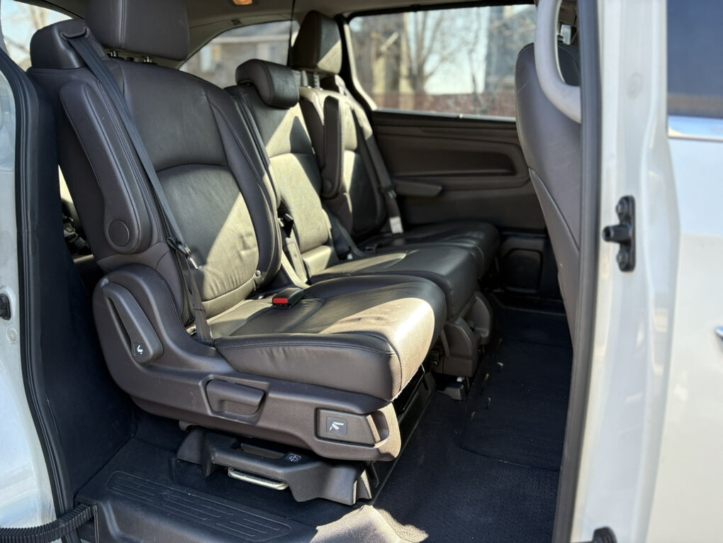 Leather seats, power sliding doors and tailgate, moonroof, 3-row seating for 7–8, Honda Sensing safety features, Apple CarPlay & Android Auto, backup camera, blind spot monitoring, push-button start, and front and rear climate control.